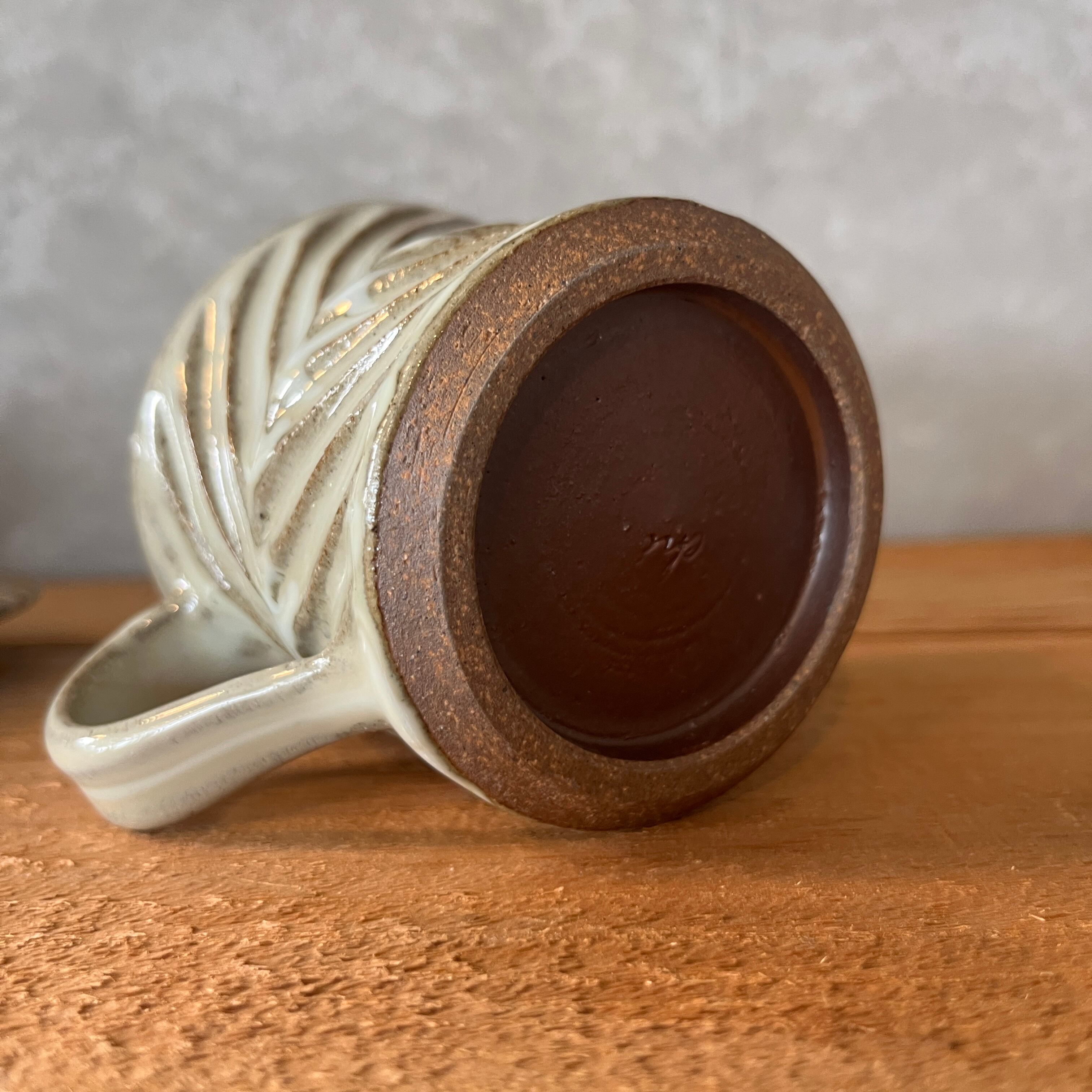 藁灰釉の奥行きある色合いが魅力的。ソーサー付きのカップですが、ソーサーは小皿単品としてもお使いいただけます。お客様がいらっしゃった時に大活躍です。