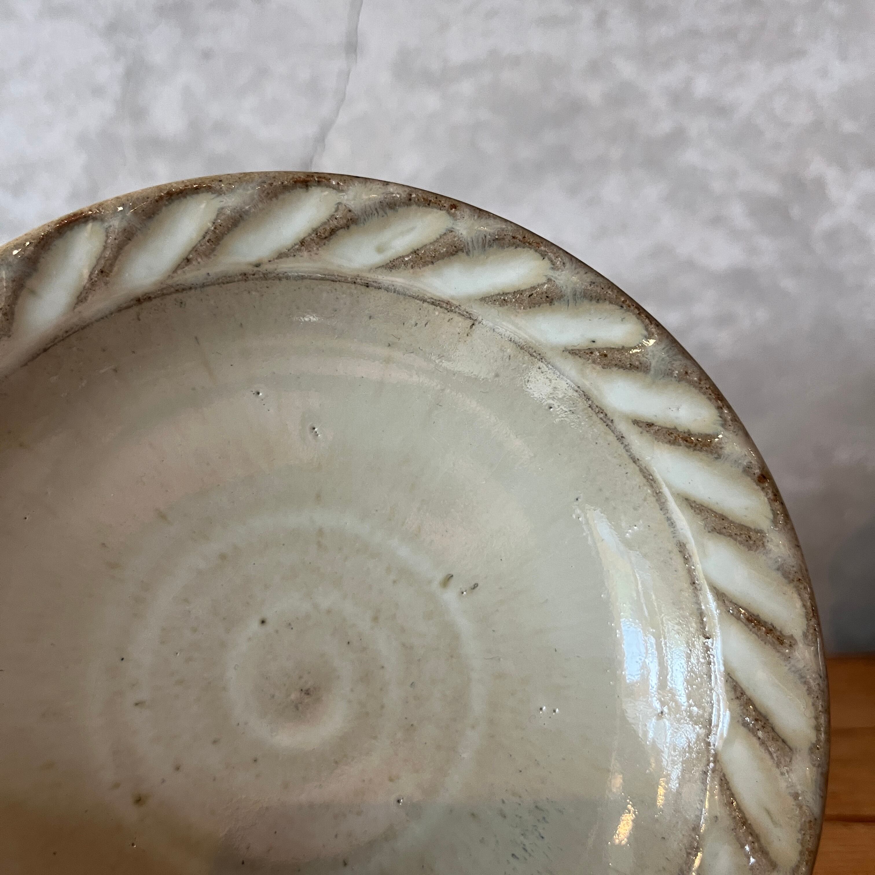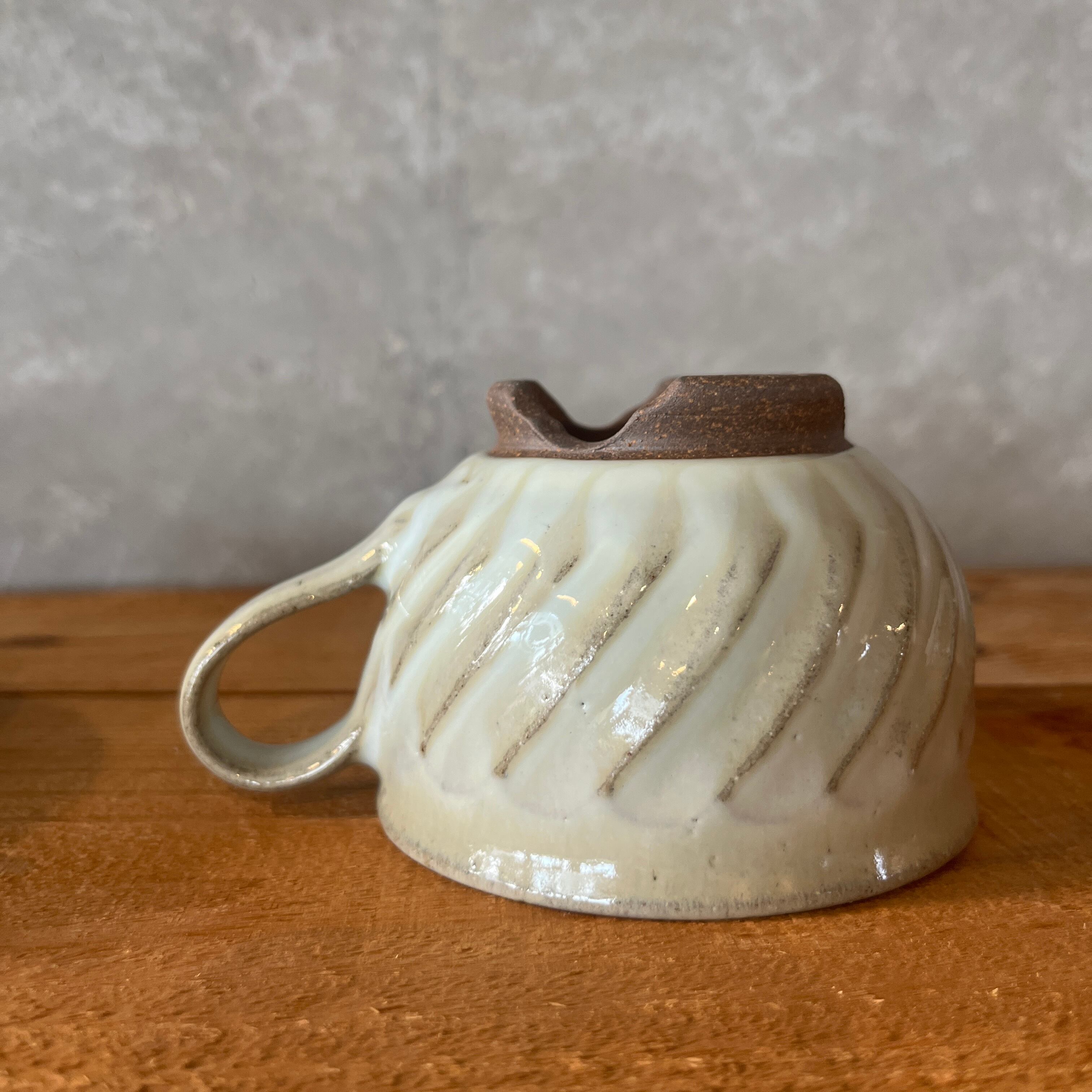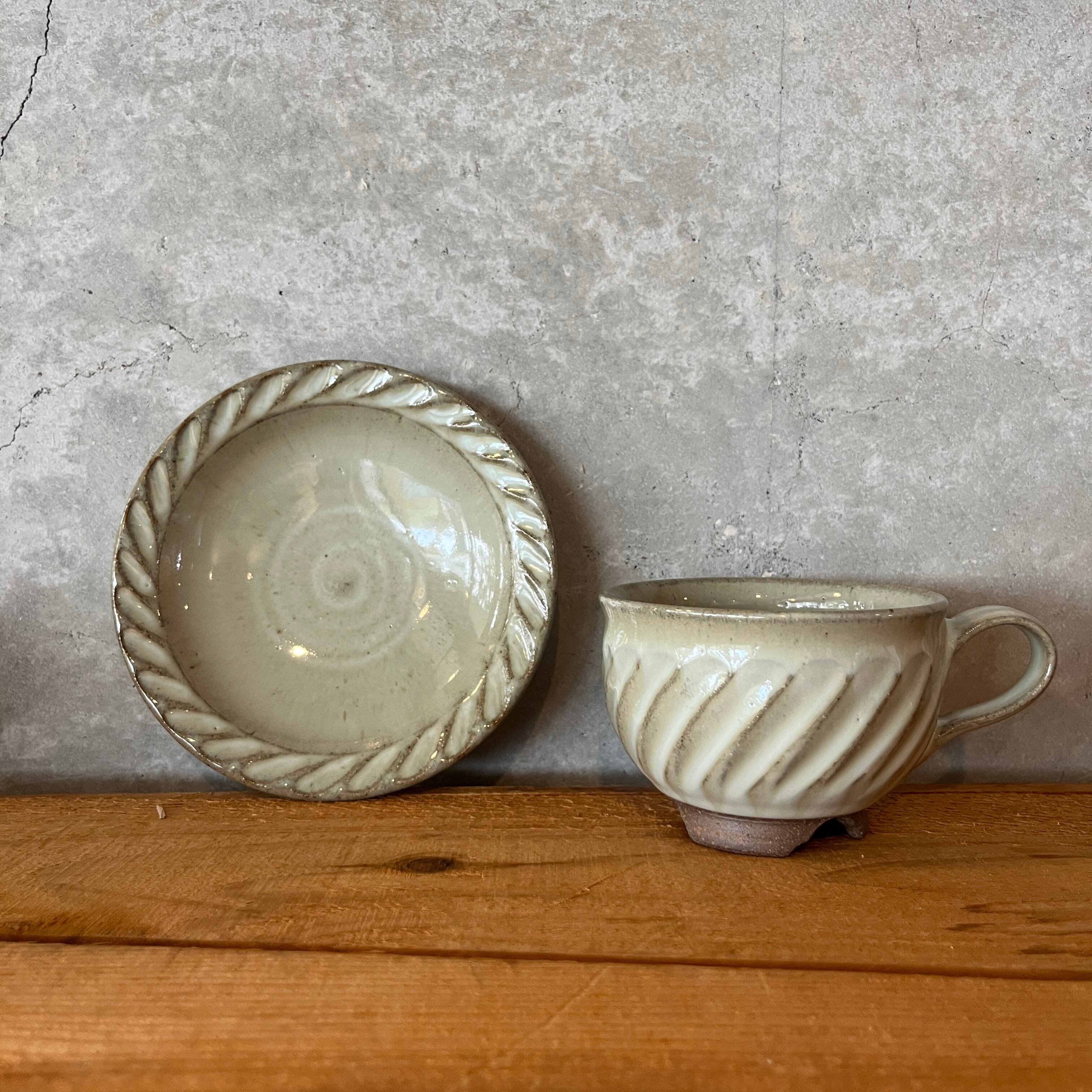 小代本谷ちひろ窯 しのぎ、 カップアンドソーサー 白小代