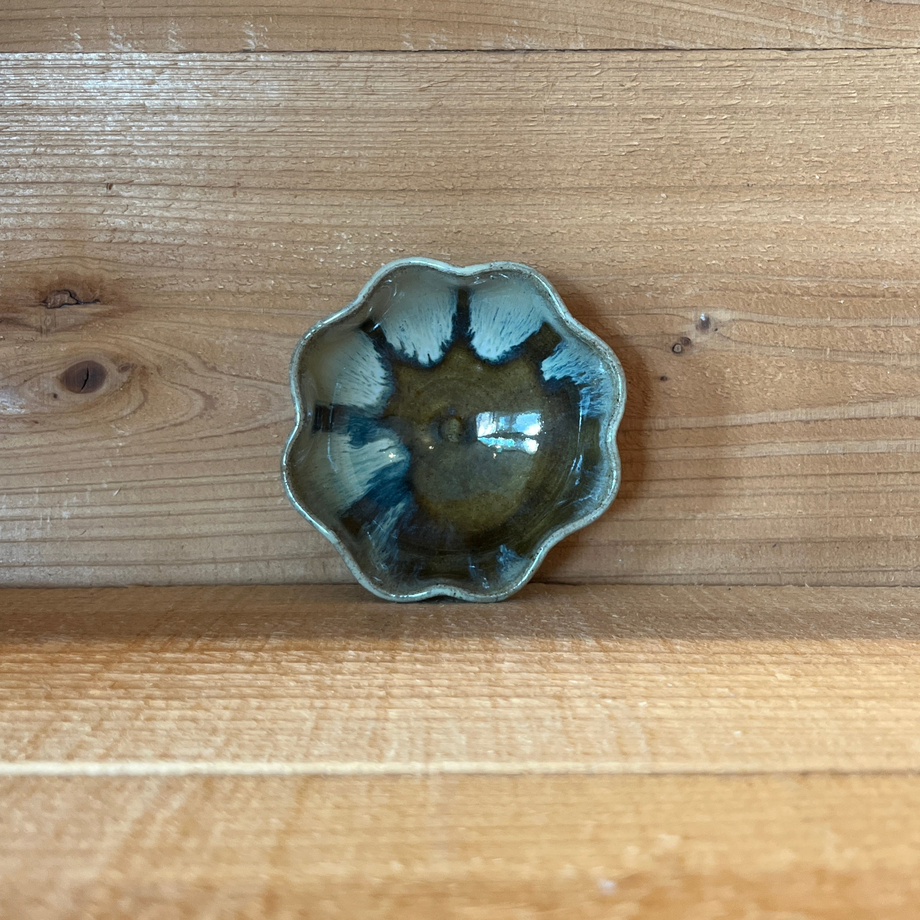 釉薬のかかり具合によってできたグラデーションが趣ある一枚。副菜や薬味のせたり、醤油皿にしたりと便利です。