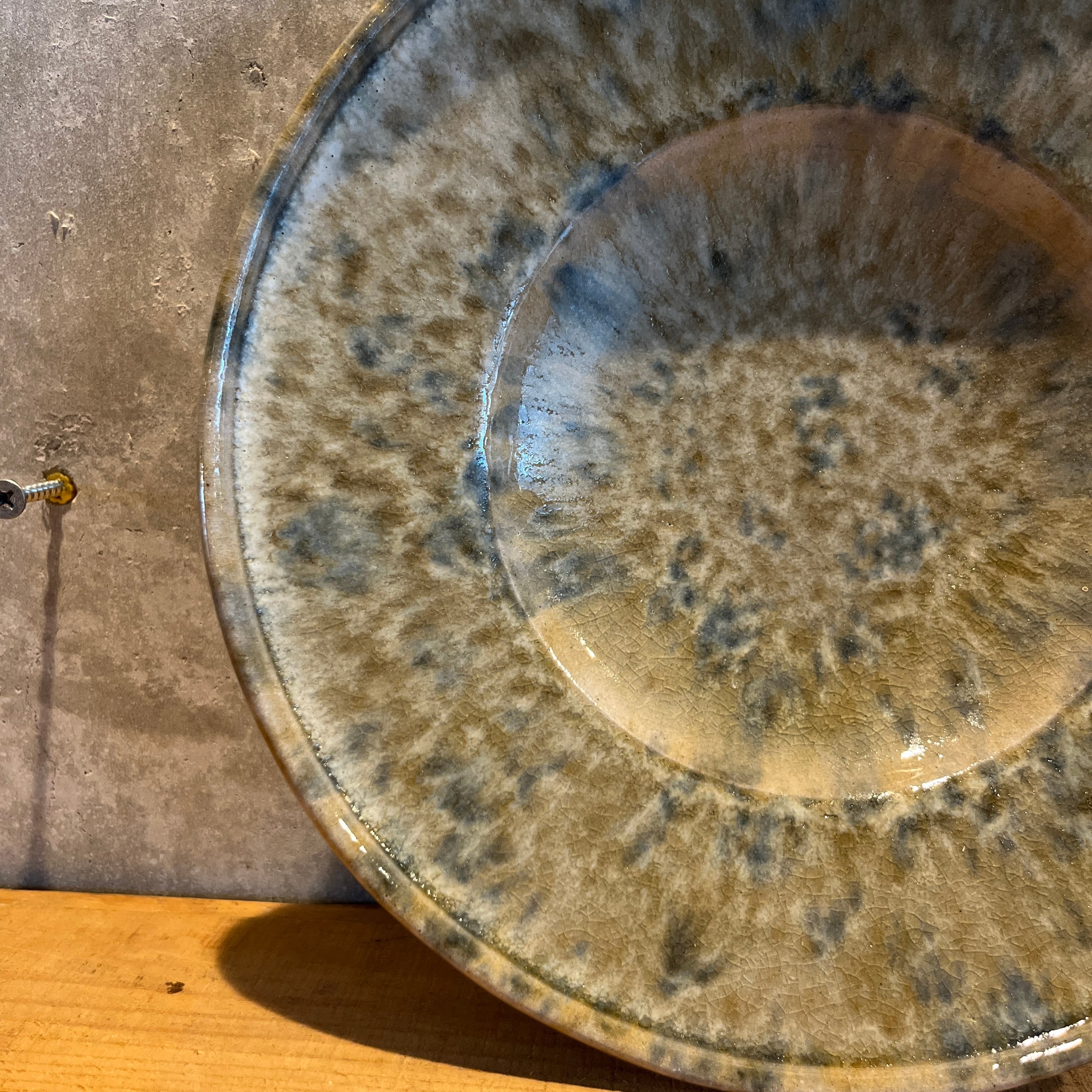 美しい色合いの彩釉を用いたリムがある器。深さがあるのでスープを注いだり、パスタ皿にしたりと様々な料理を主役にしてくれます。