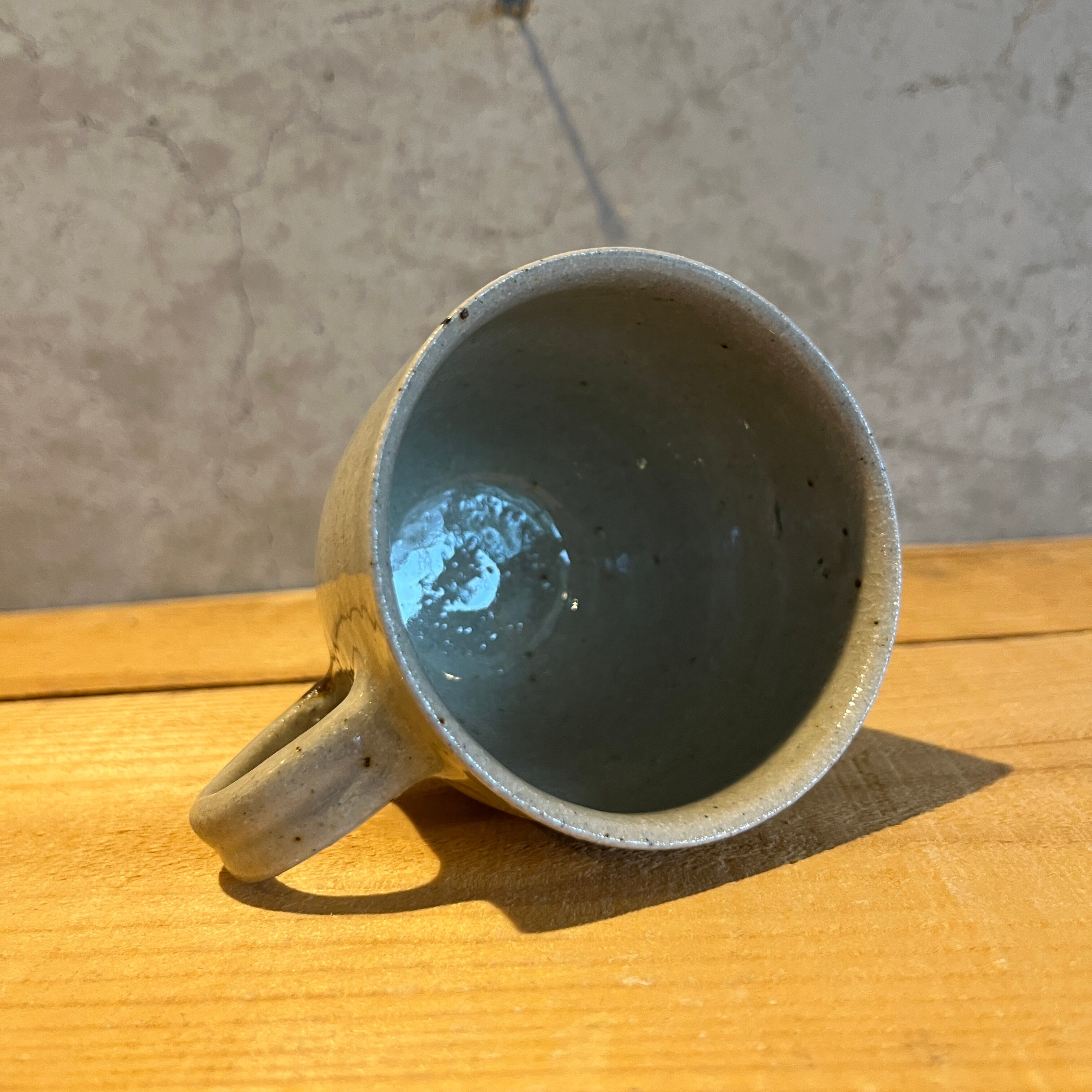 灰釉を用いてつくられたマグカップは、大きすぎず小さすぎずのちょうど良いサイズ感。毎日のお茶の時間が楽しく気分があがりそうです。