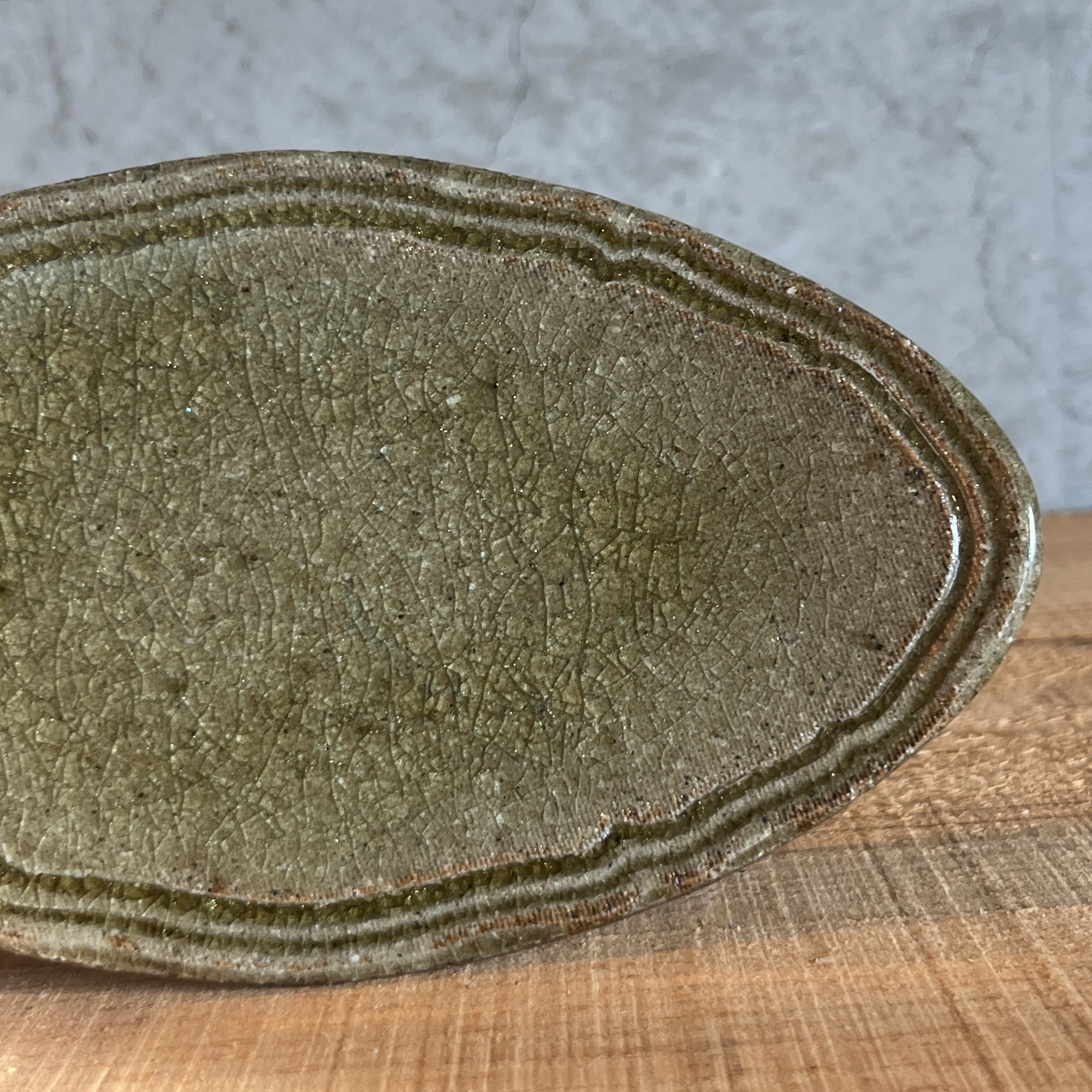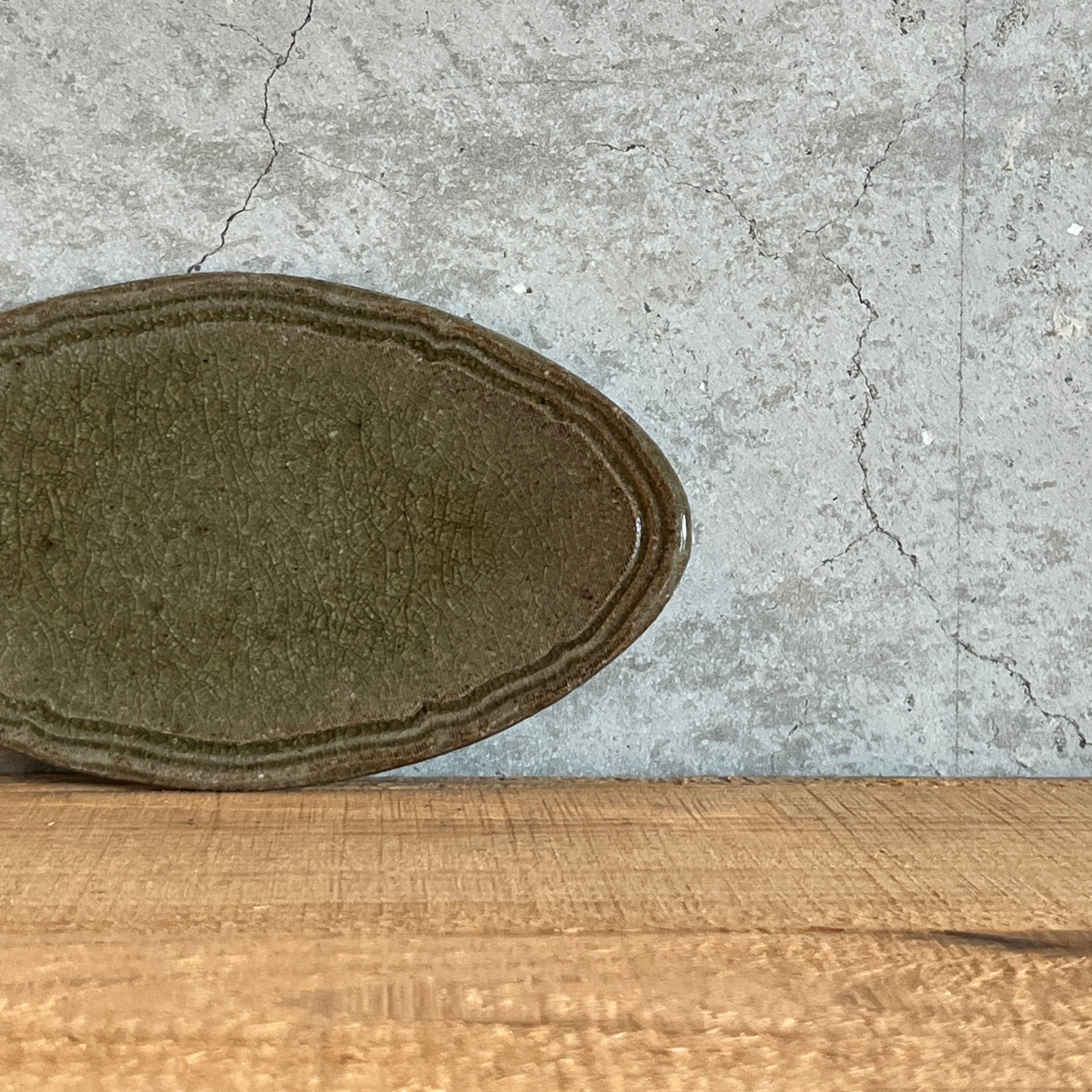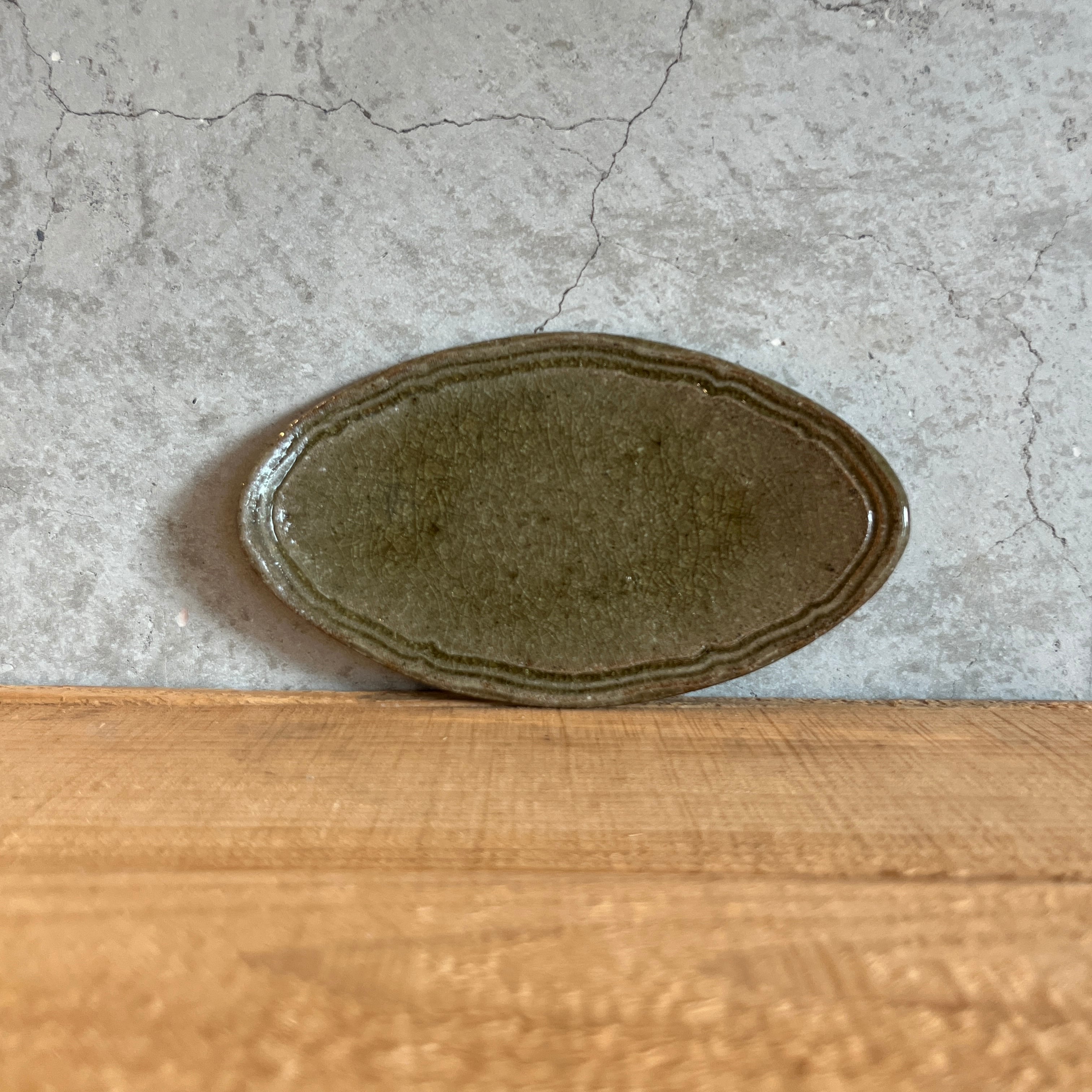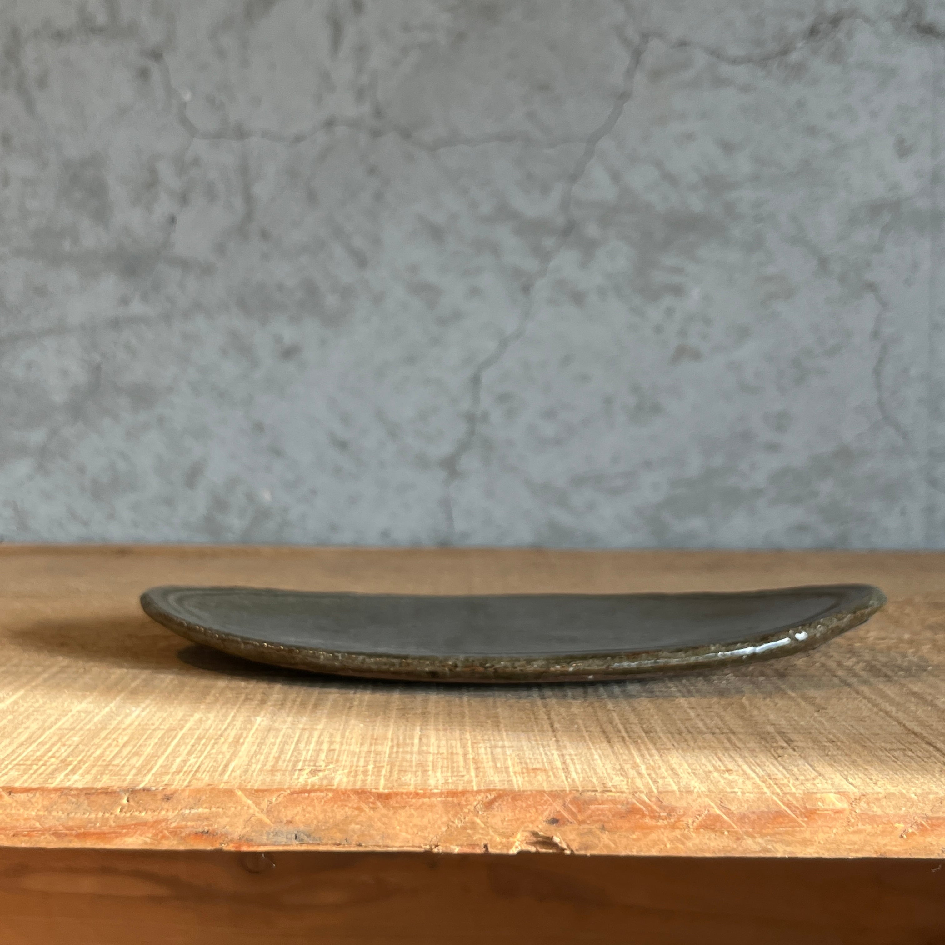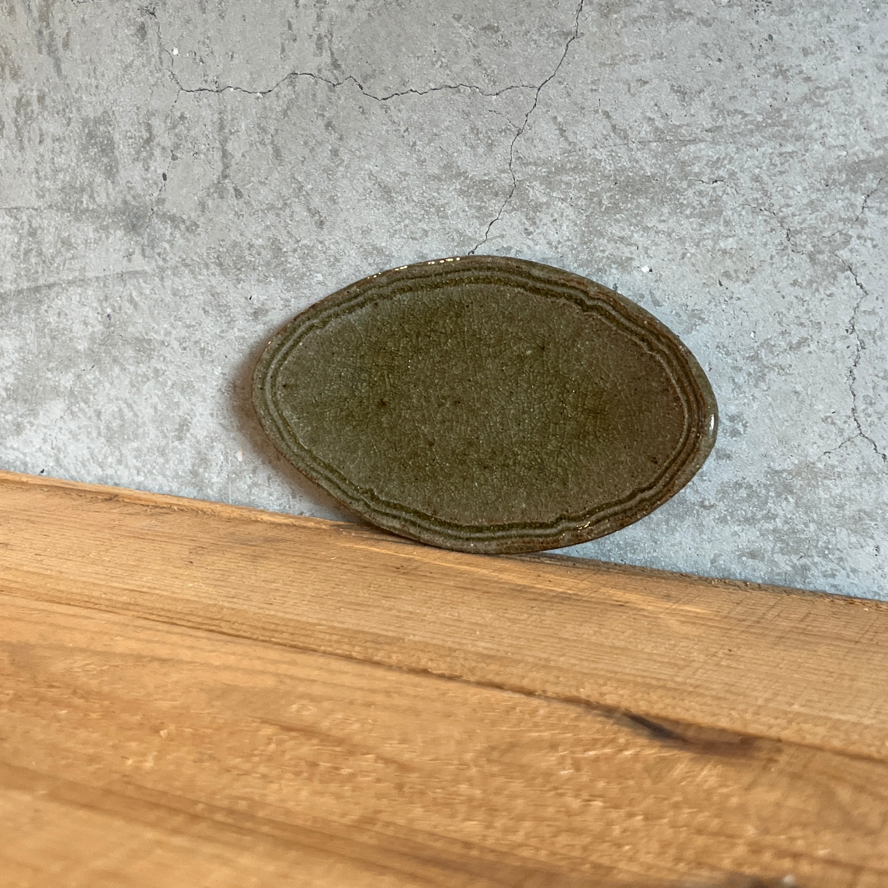 小代瑞穂窯 福田るいさんの楕円 浅皿です。副菜をちょこんとのせたり、焼き菓子を乗せたりしてお楽しみ下さい。ジュエリートレイとしても素敵ですよ
