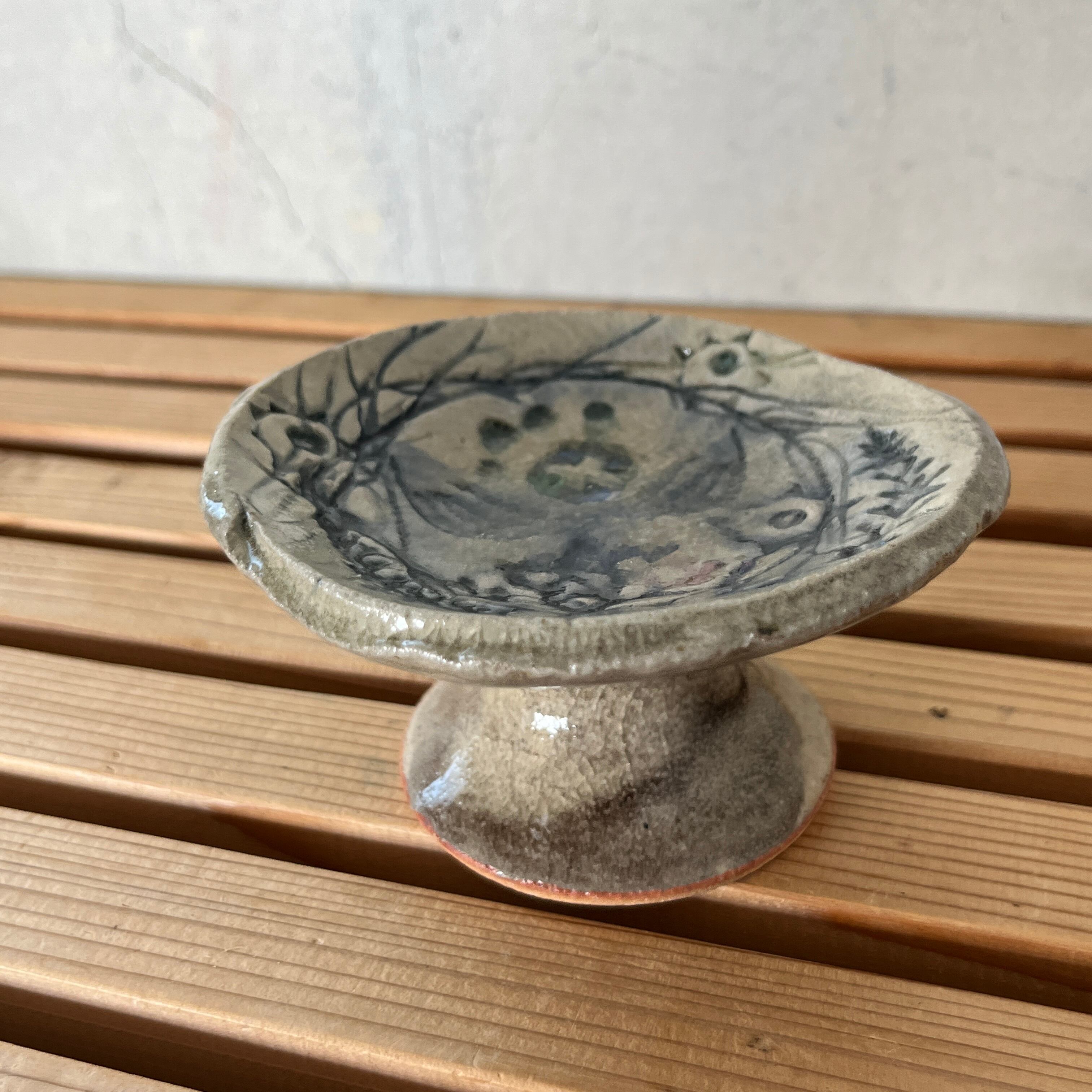 小代瑞穂窯 福田るいさんの新作 Botaシリーズの高付3寸サイズです。凹凸の模様に釉薬をのせて削るという手間がかかったBota。