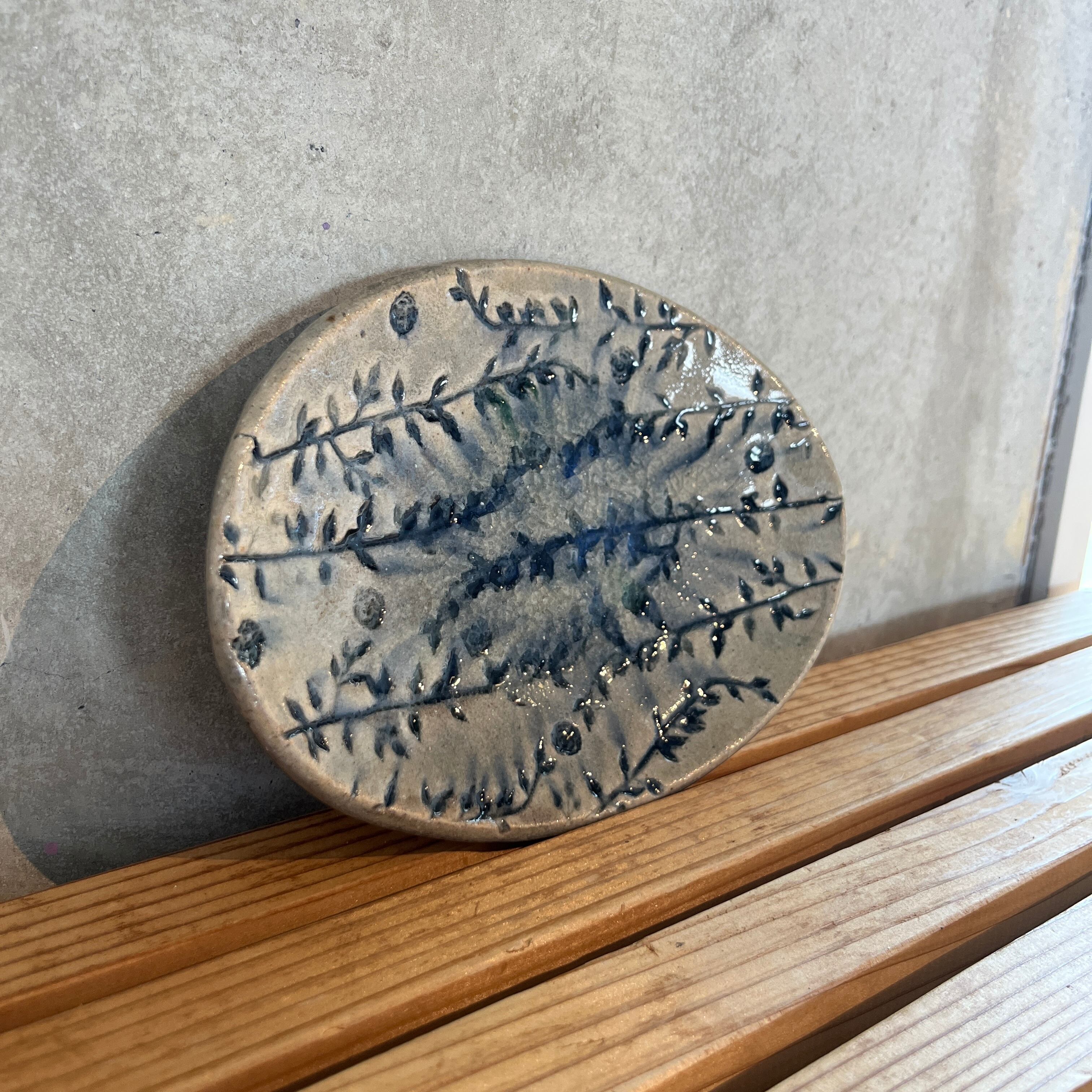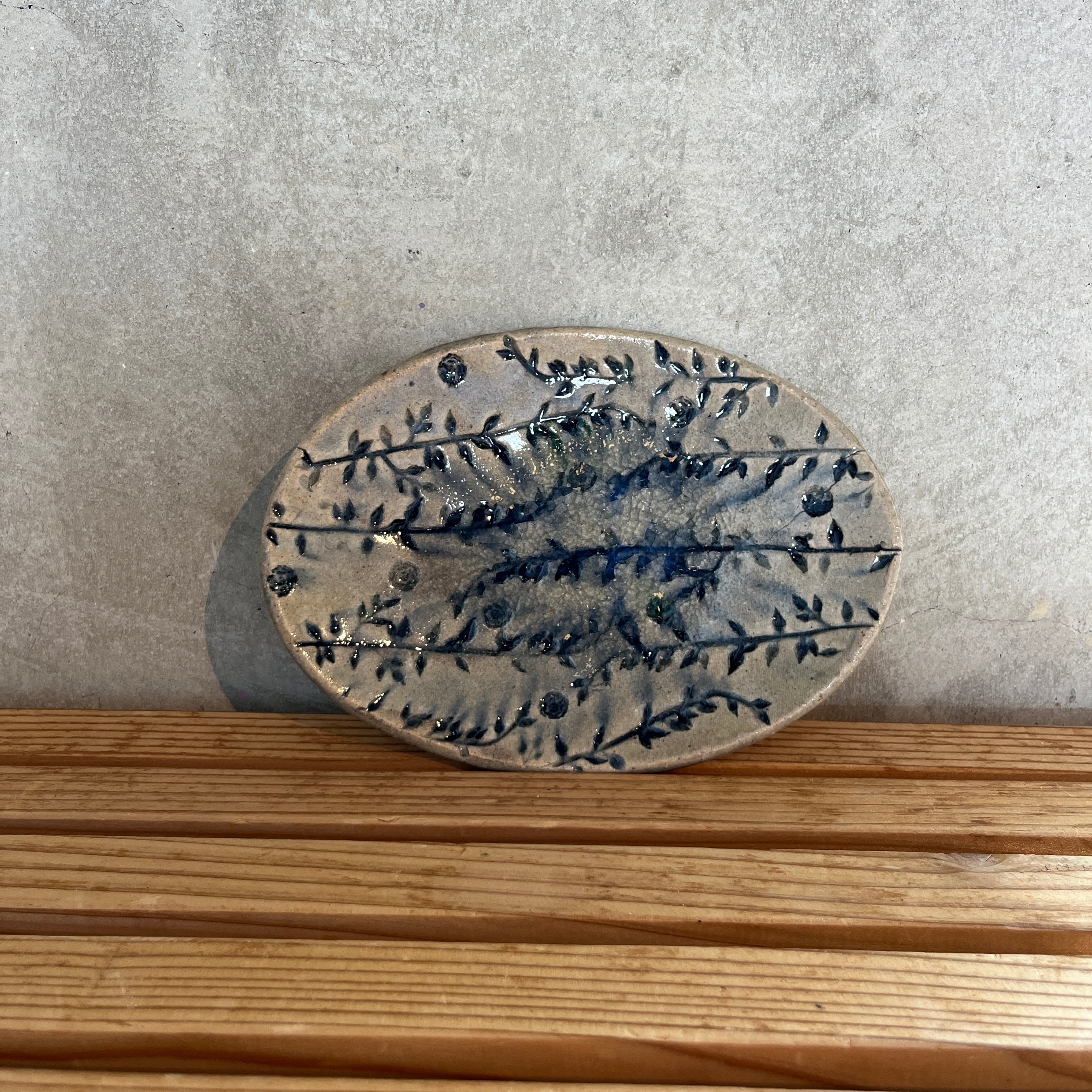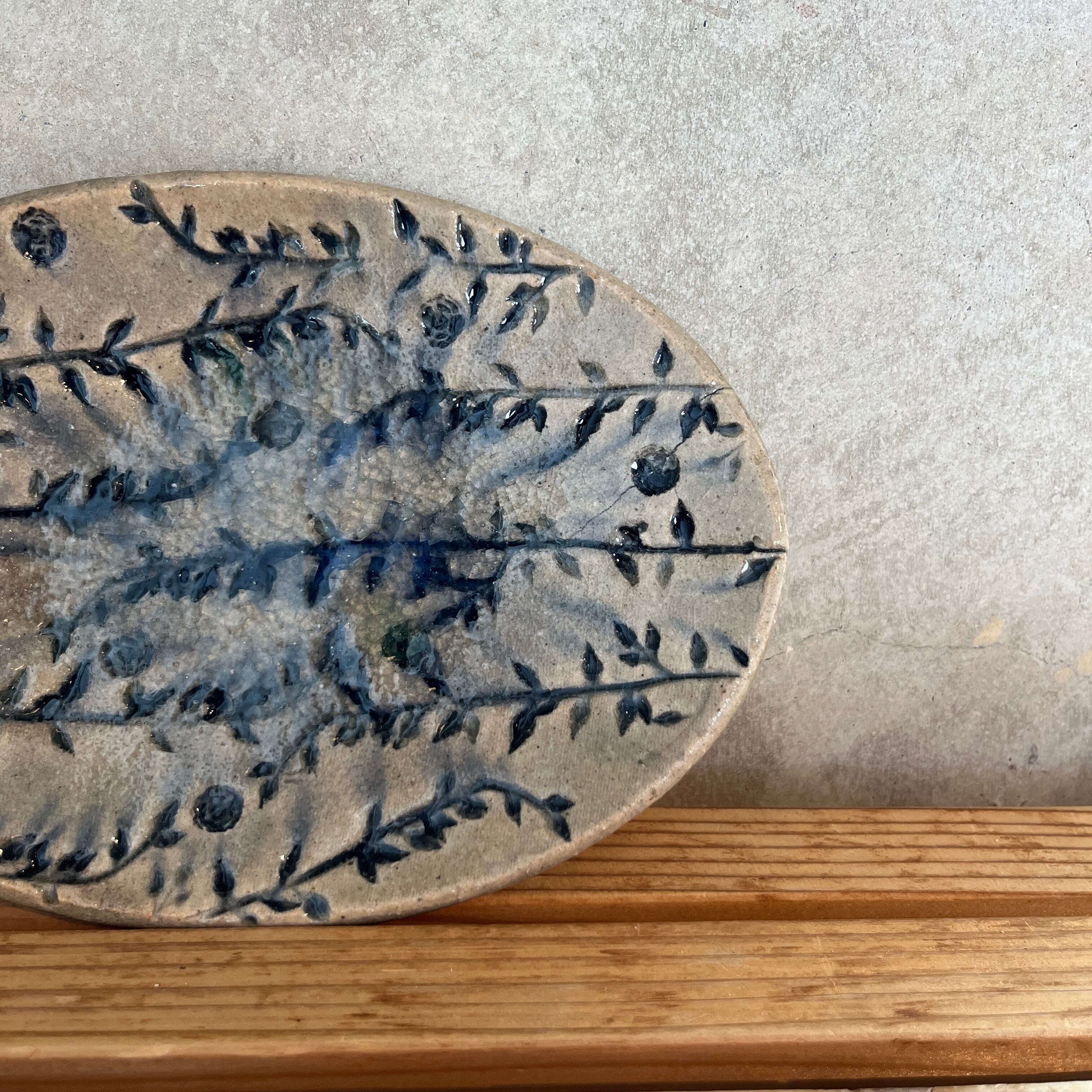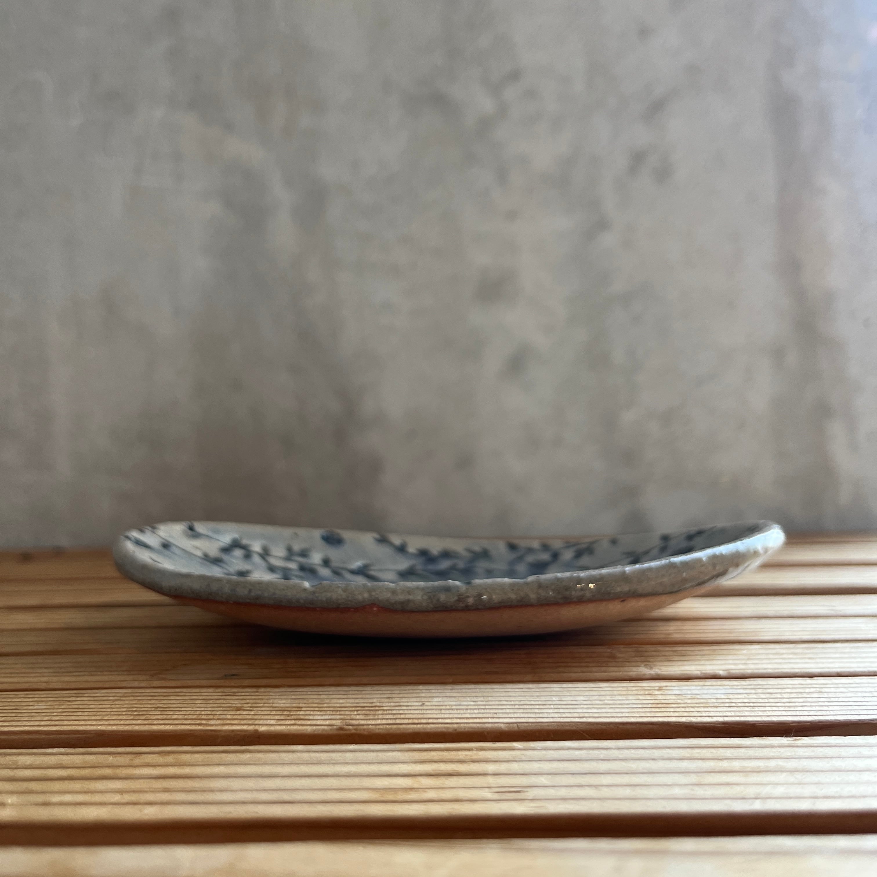 小代瑞穂窯 福田るいさんの新作 Botaシリーズの楕円皿 小サイズです。凹凸の模様に釉薬をのせて削るという手間がかかったBota。