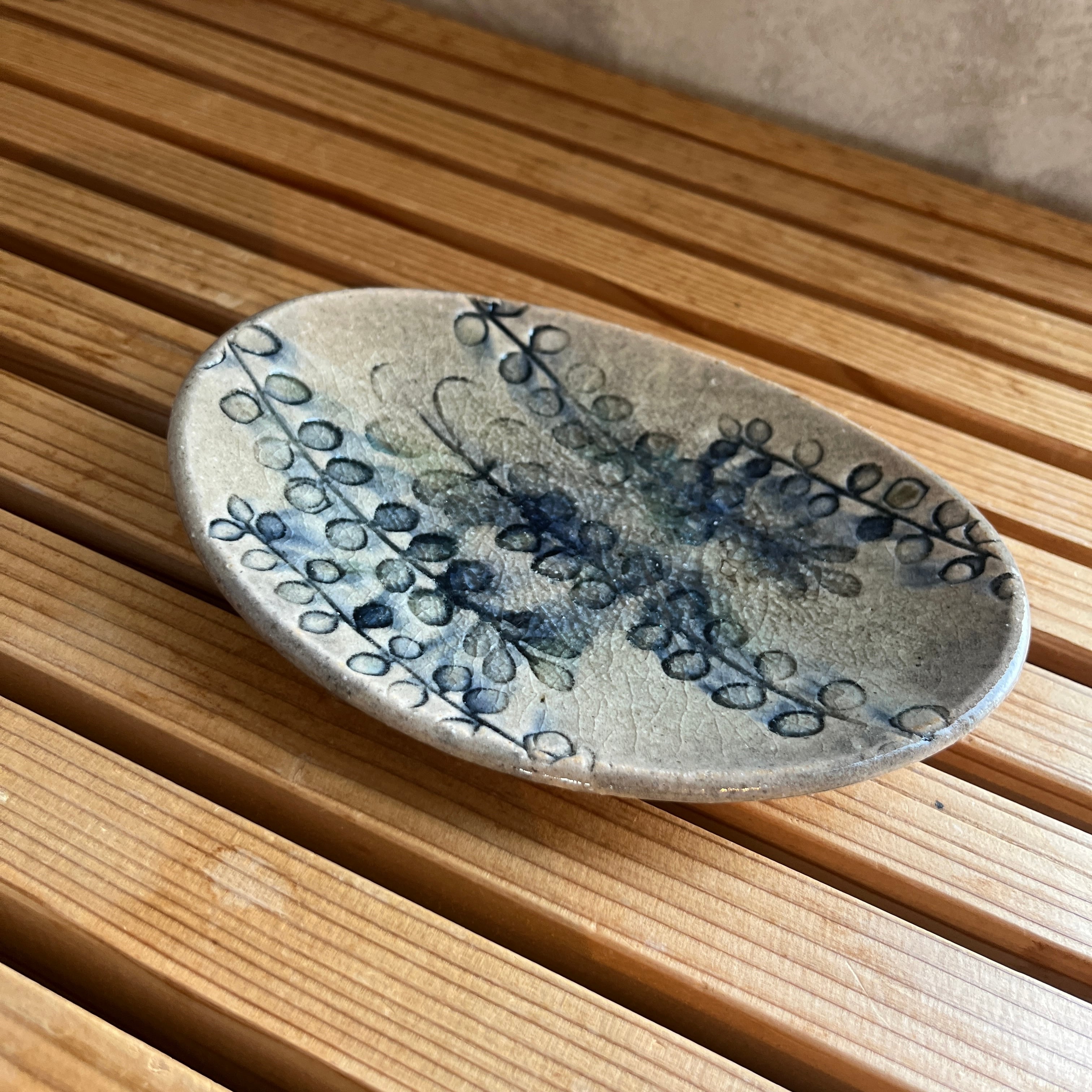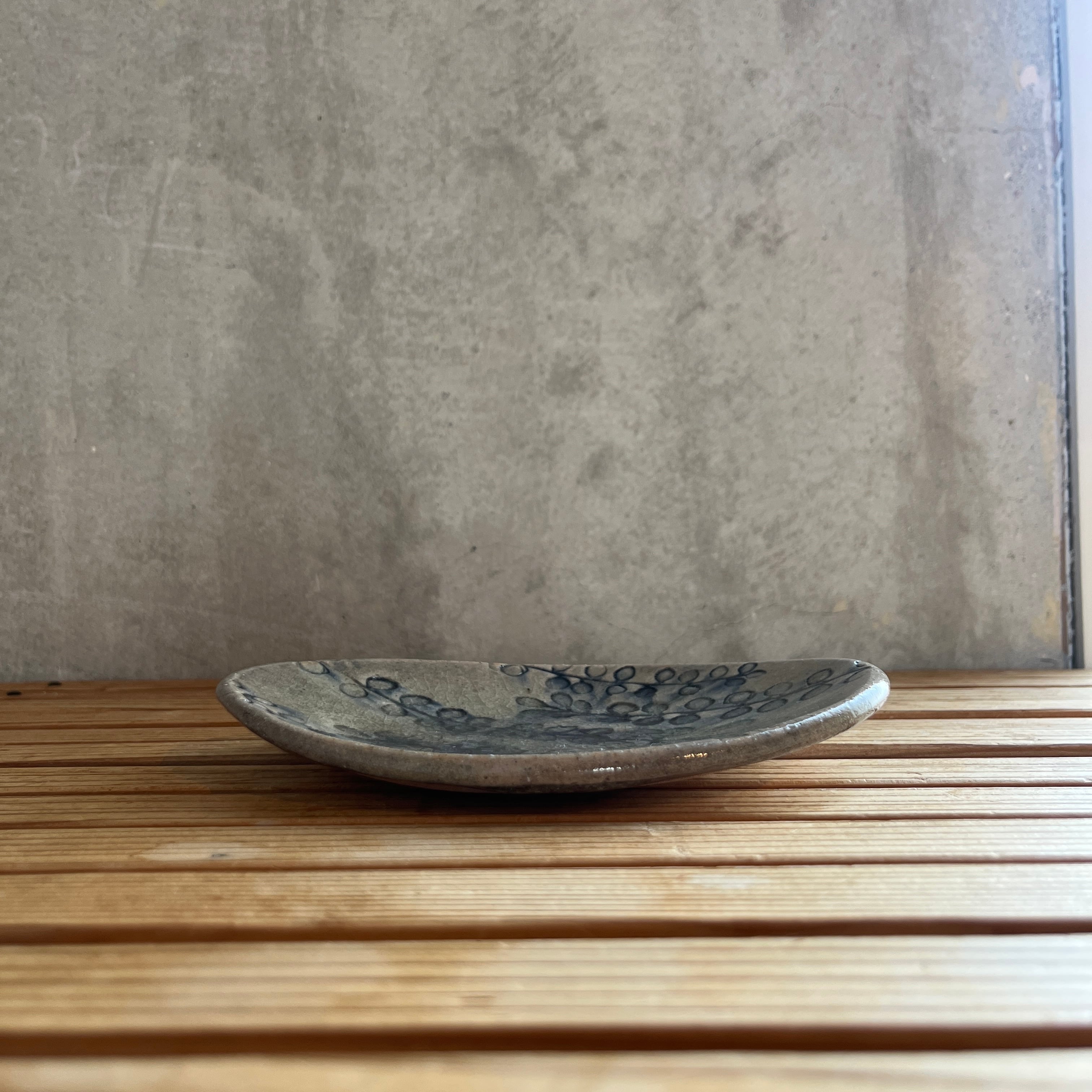 小代瑞穂窯 福田るいさんの新作 Botaシリーズの楕円皿 小サイズです。凹凸の模様に釉薬をのせて削るという手間がかかったBota。