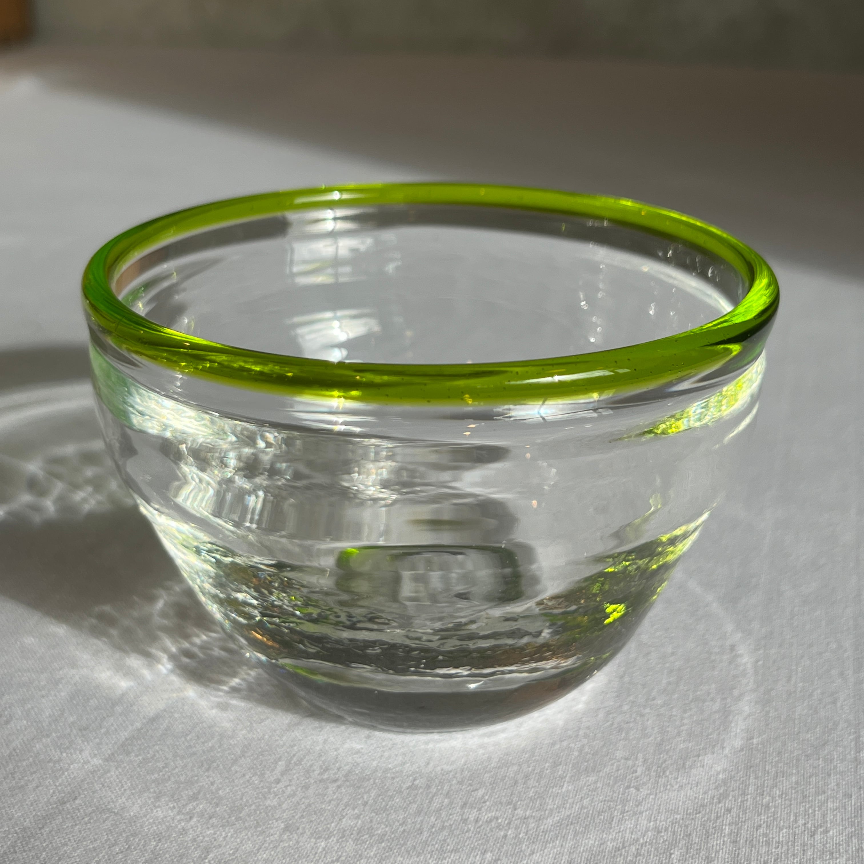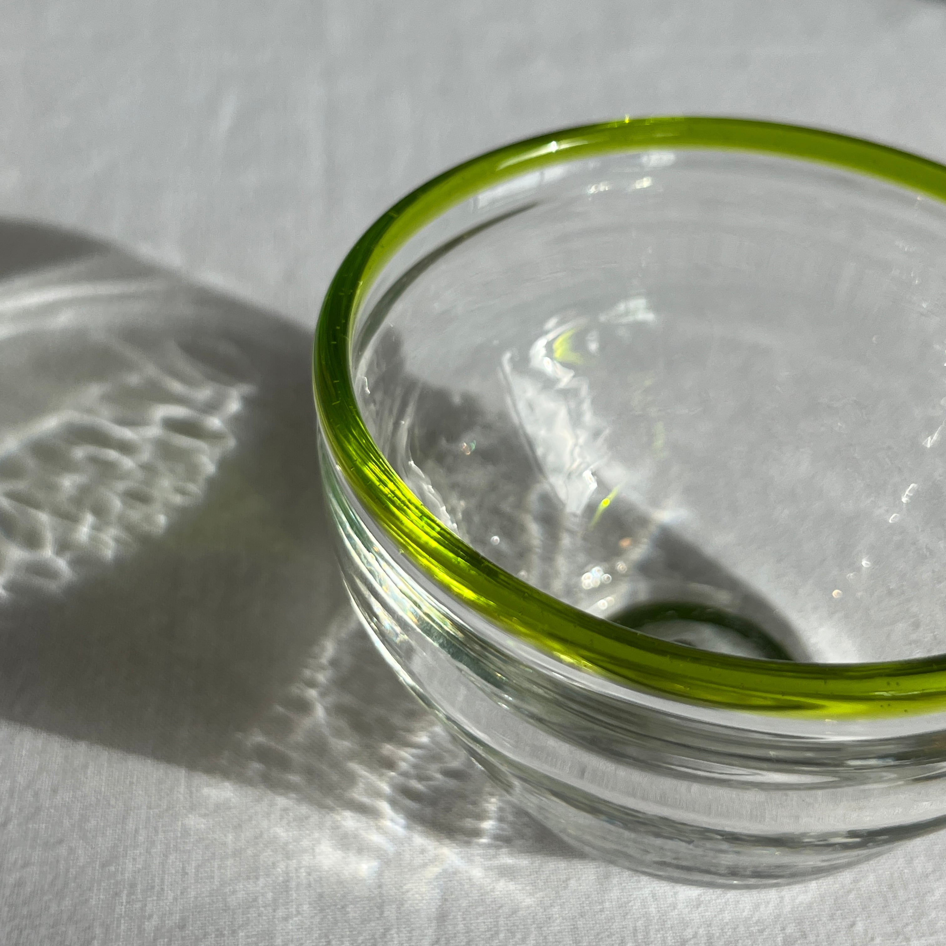 縁取りに鮮やかなグリーンがさりげない小鉢です。