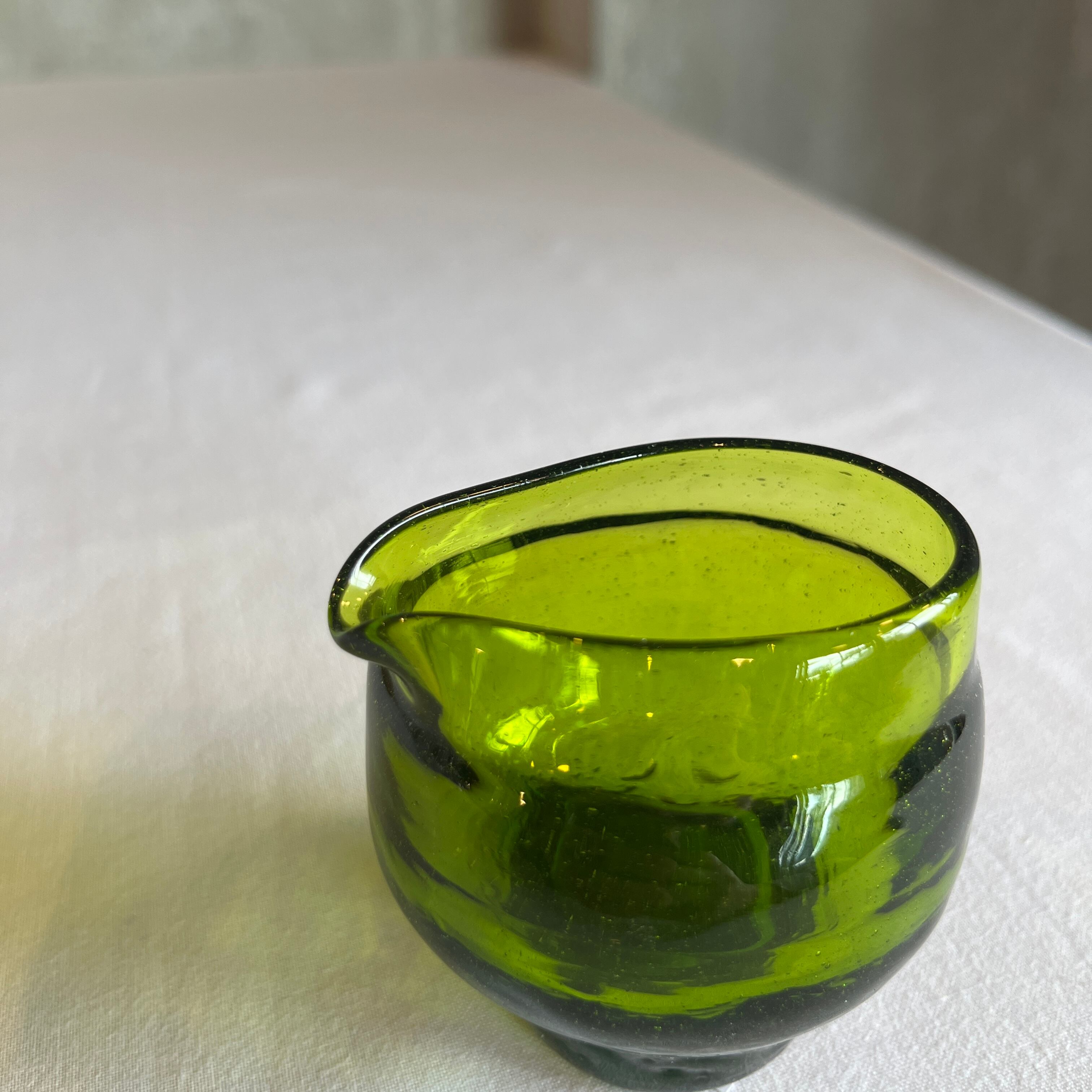 片口のぐい呑みです。深いグリーンが美しく、お酒を美味しく呑めそうです。