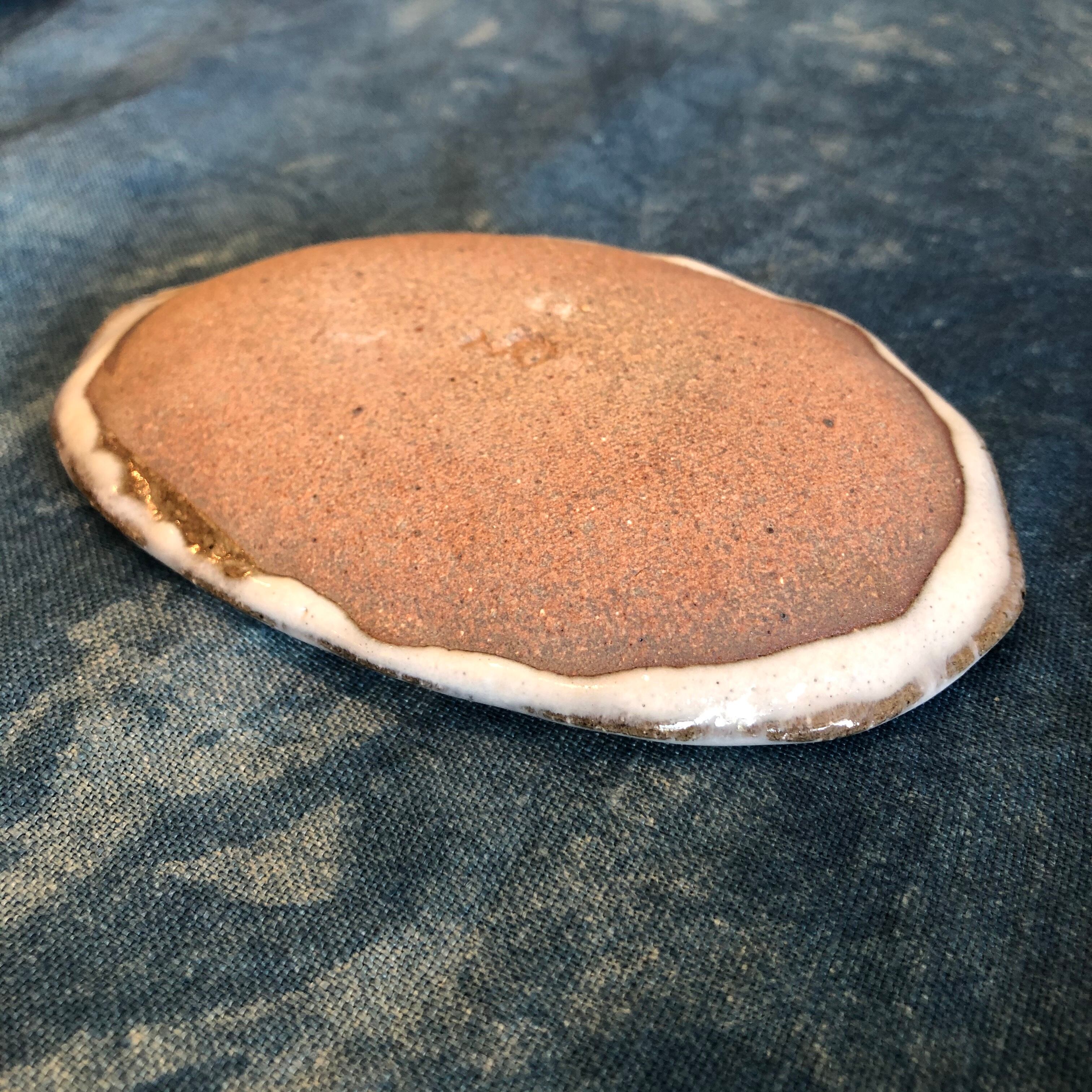 小代焼の伝統的な藁灰釉を用いて作られた楕円皿。少し深さがあるので、ソースがあるようなケーキやプリンにも使い勝手のよい器です。縁はなみなみとした装飾が施されており、シンプルな中にもさりげないデザインの一枚です。