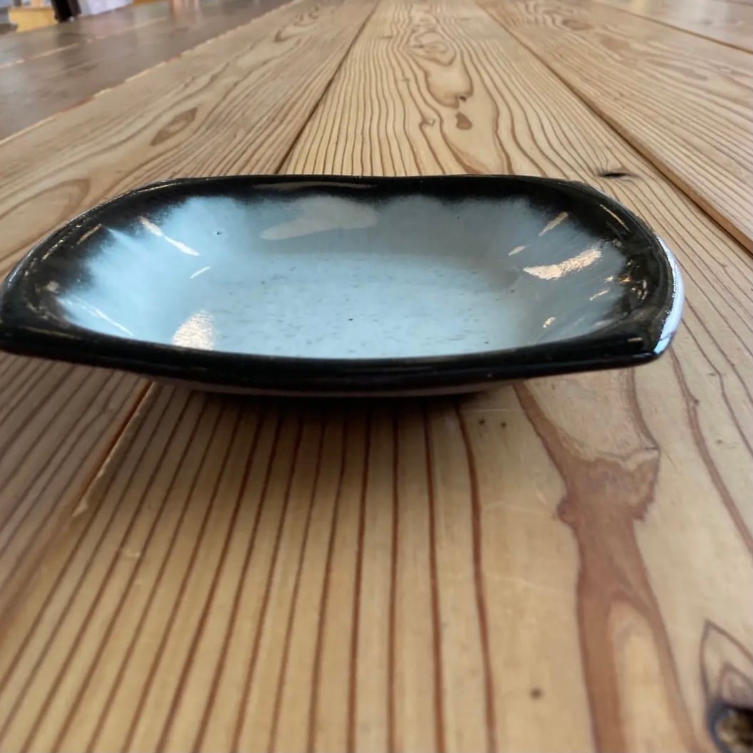 小代瑞穂窯 福田るいさんのスクエア型。流れる釉薬の配色が美しい仕上がり。食卓に使いやすいサイズ感です。