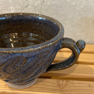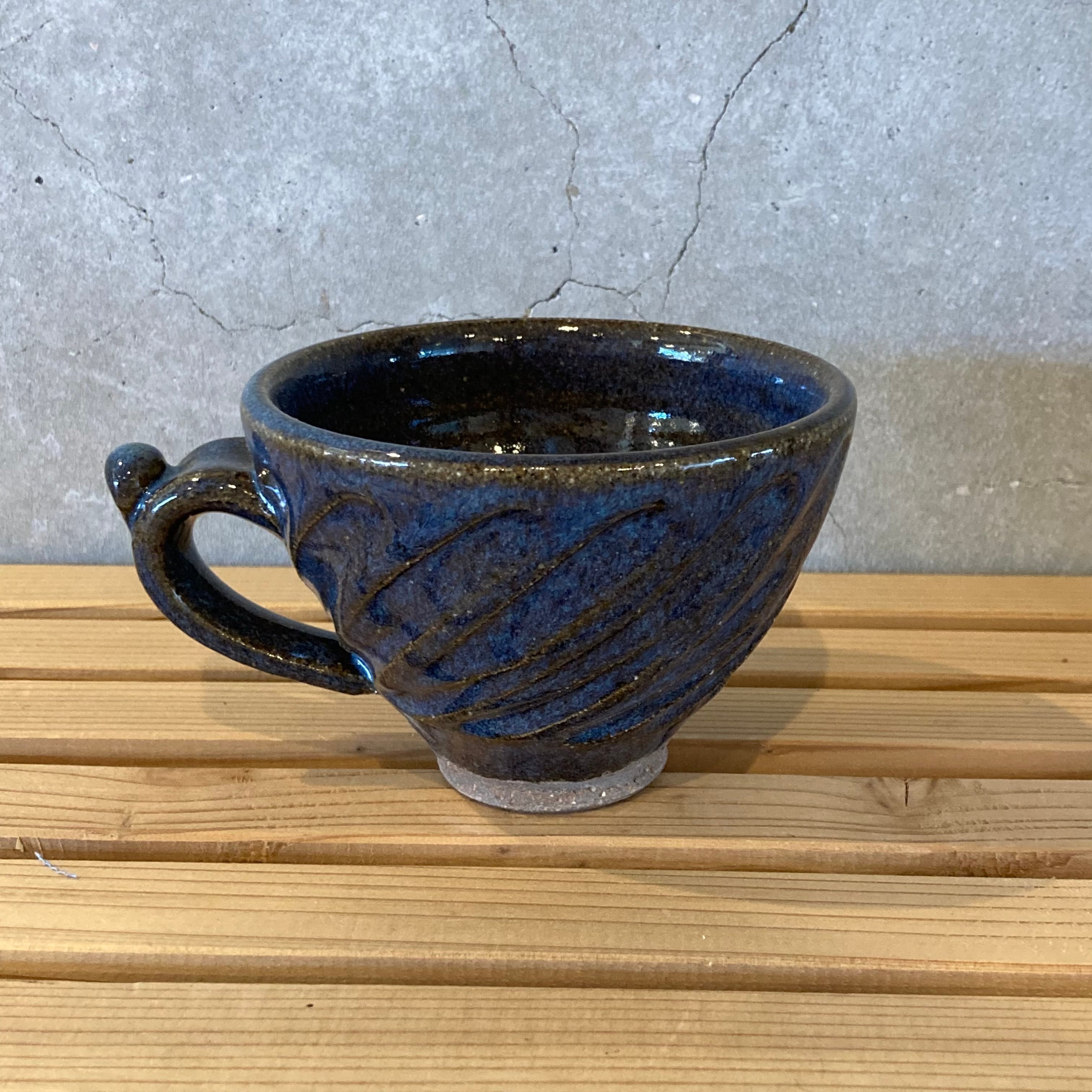小代瑞穂窯 タシュロン別注マグカップ 藍 グリップ付