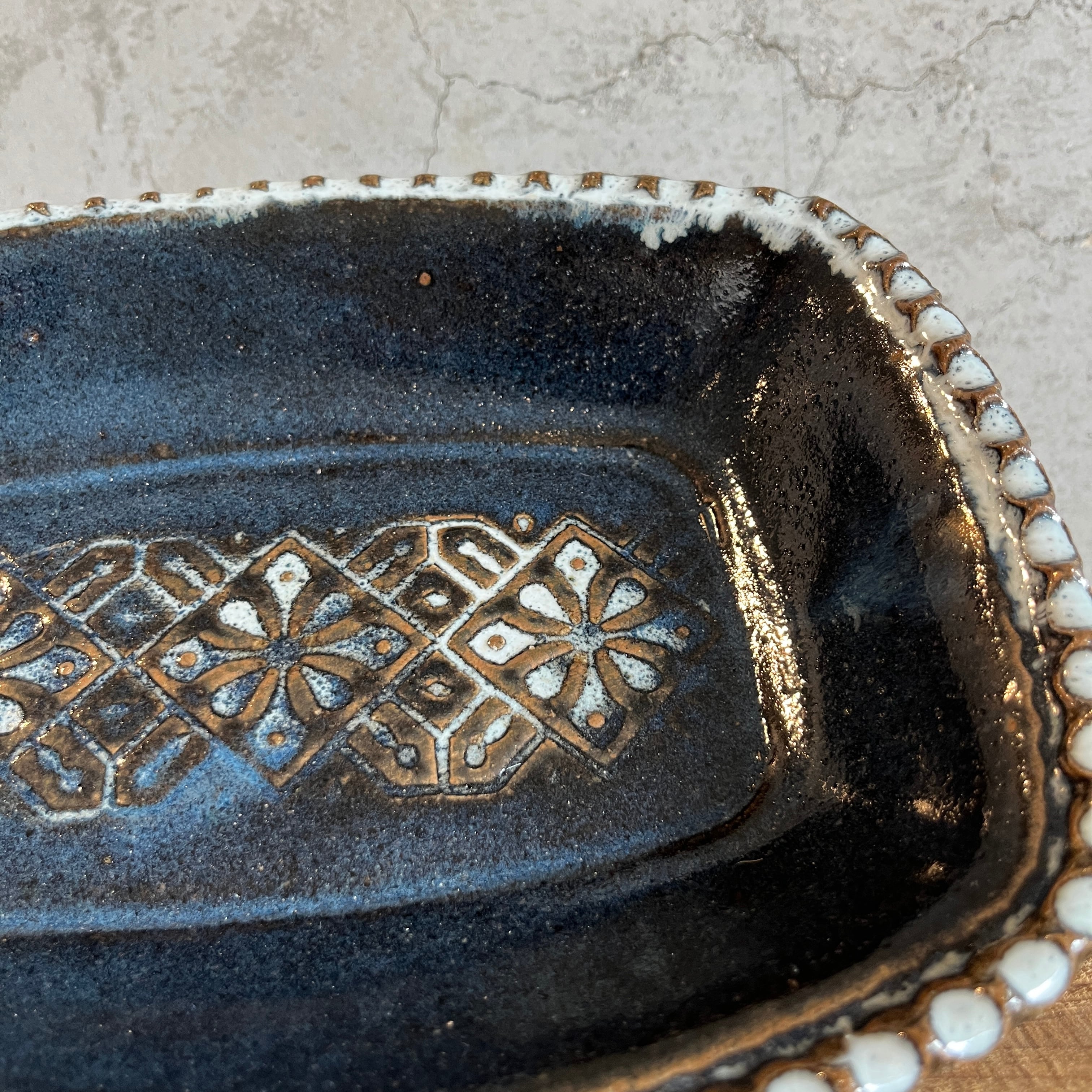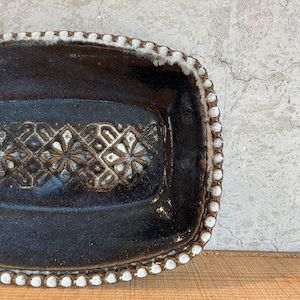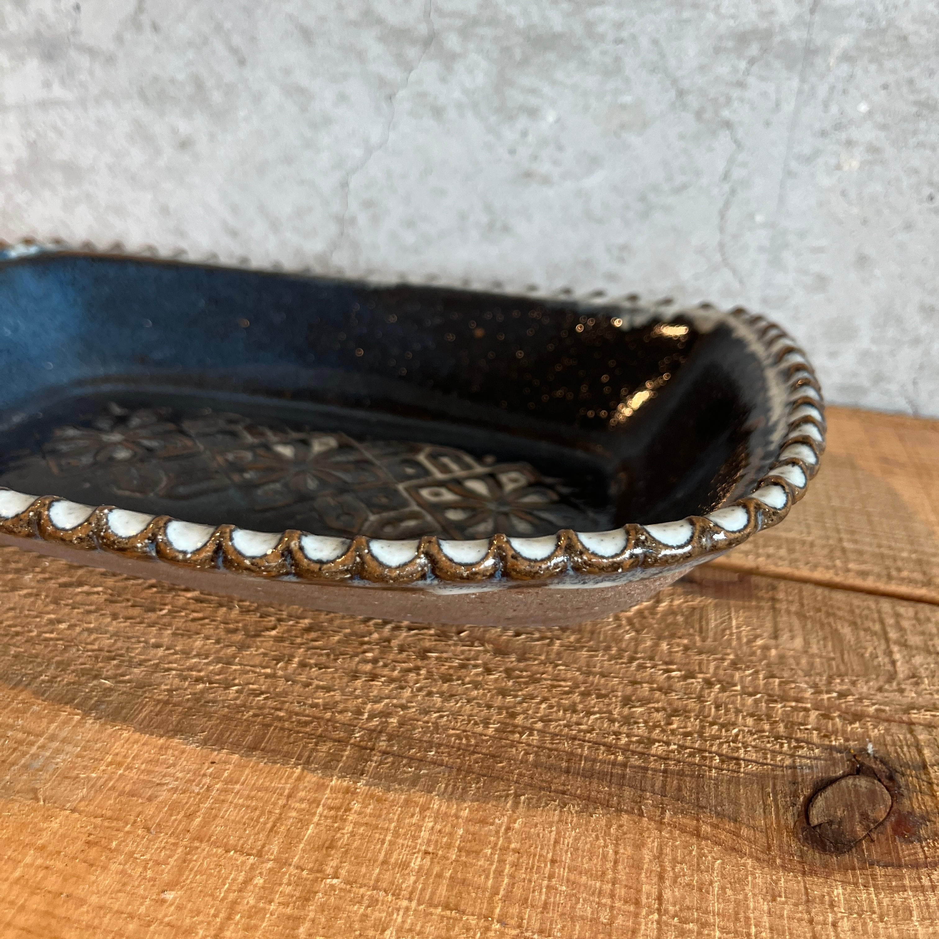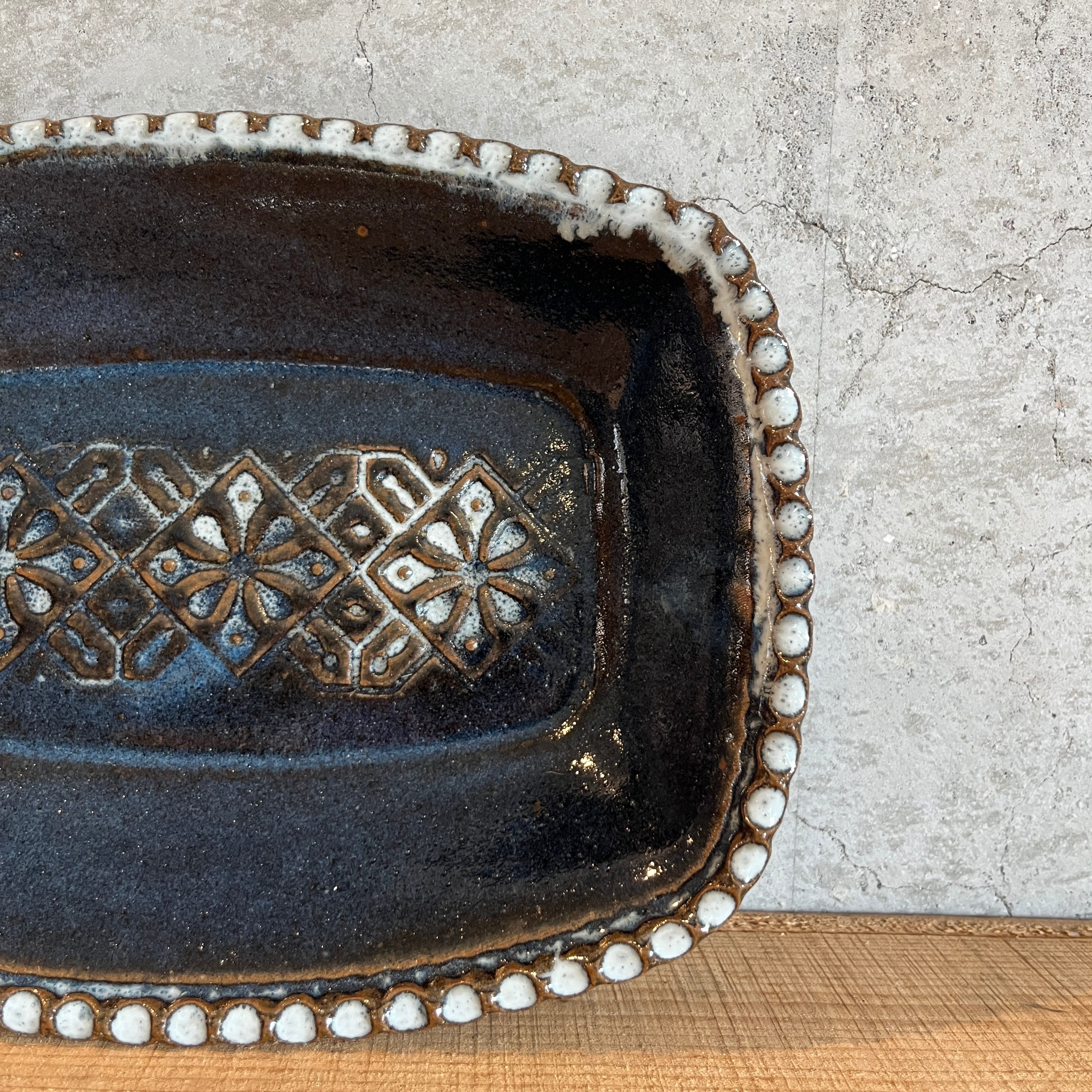 小代瑞穂窯 福田るいさんの角皿鉢。流れる釉薬によって浮かび上がる模様がとても美しい仕上がり。