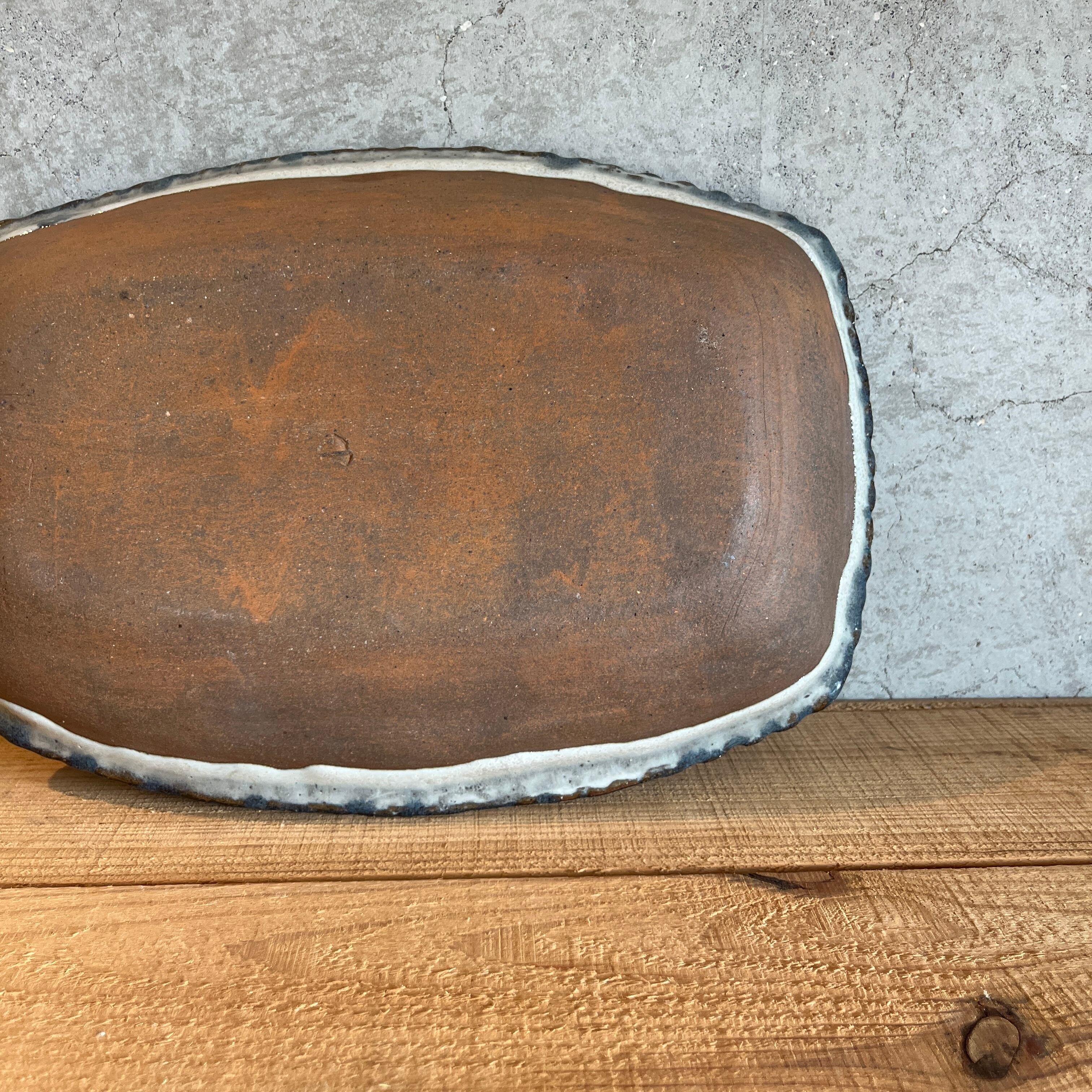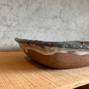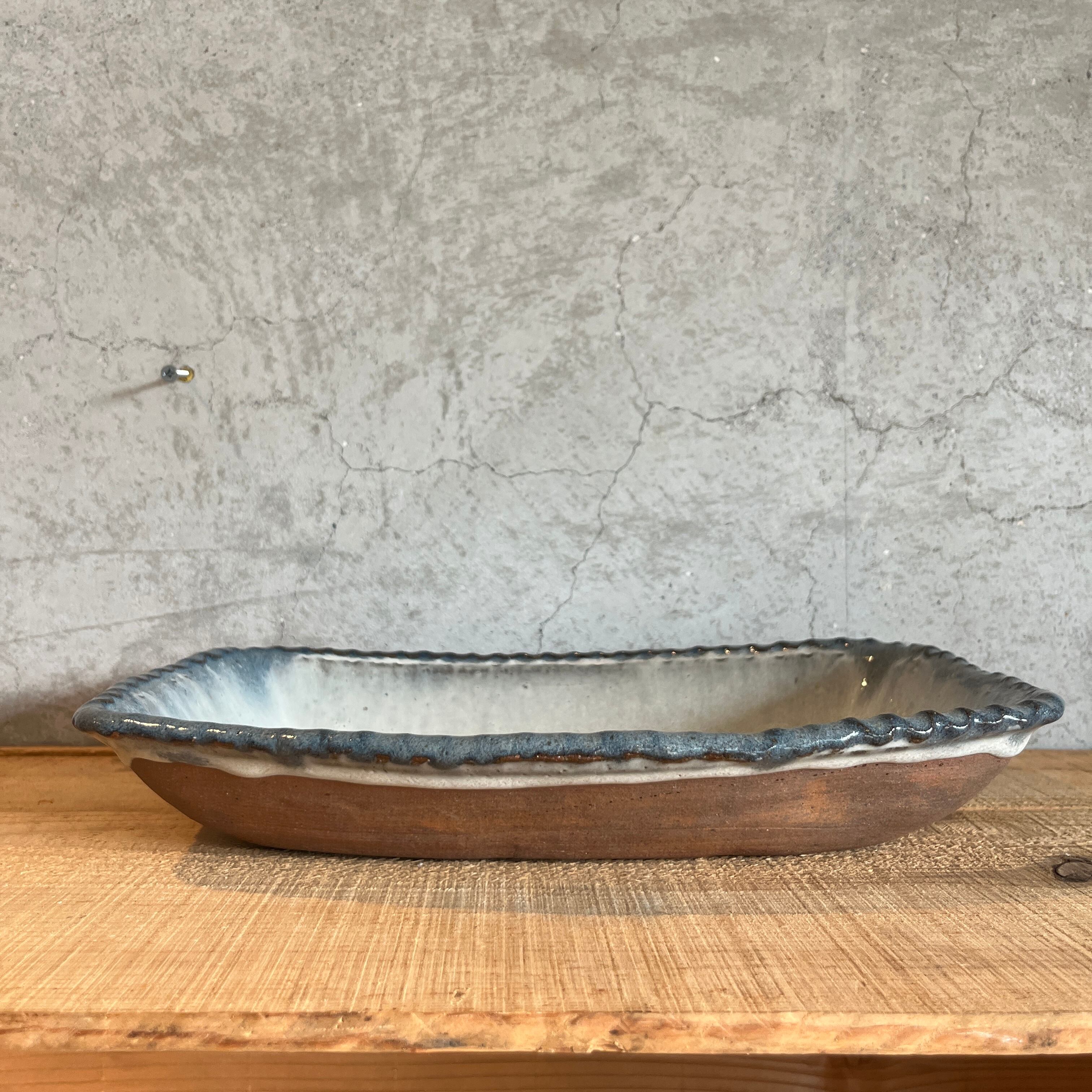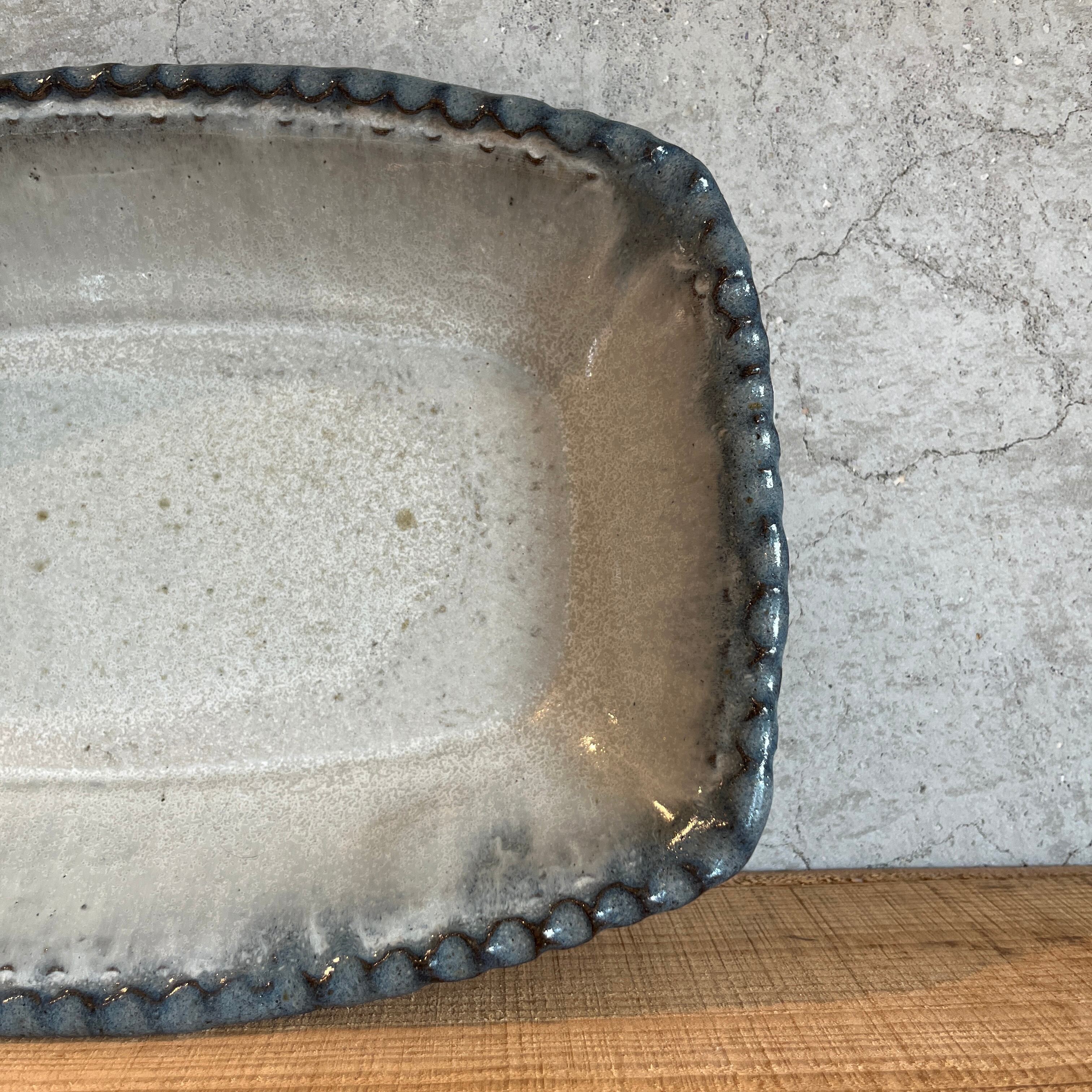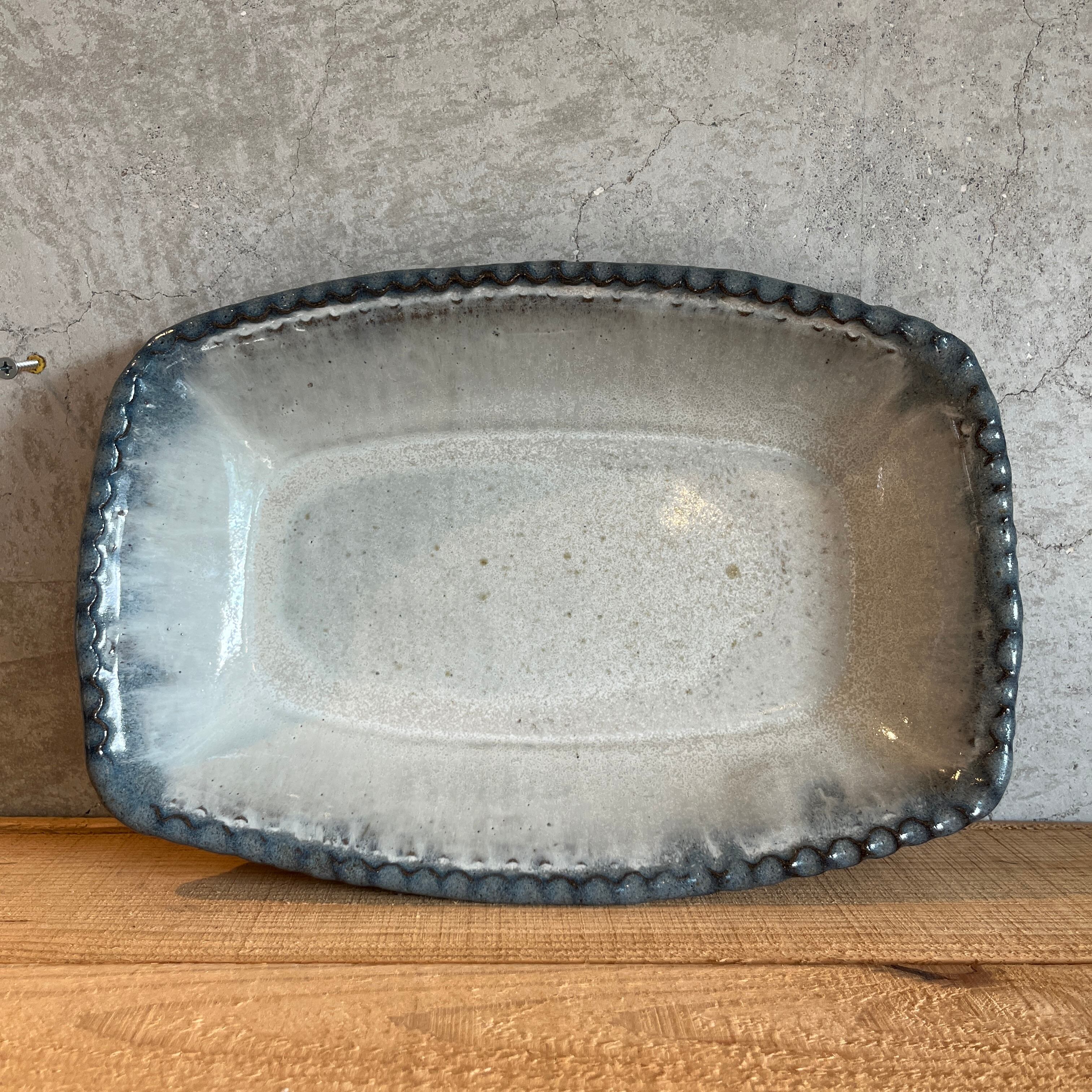 小代瑞穂窯 福田るいさんの角皿鉢。流れる釉薬によって浮かび上がる模様がとても美しい仕上がり。