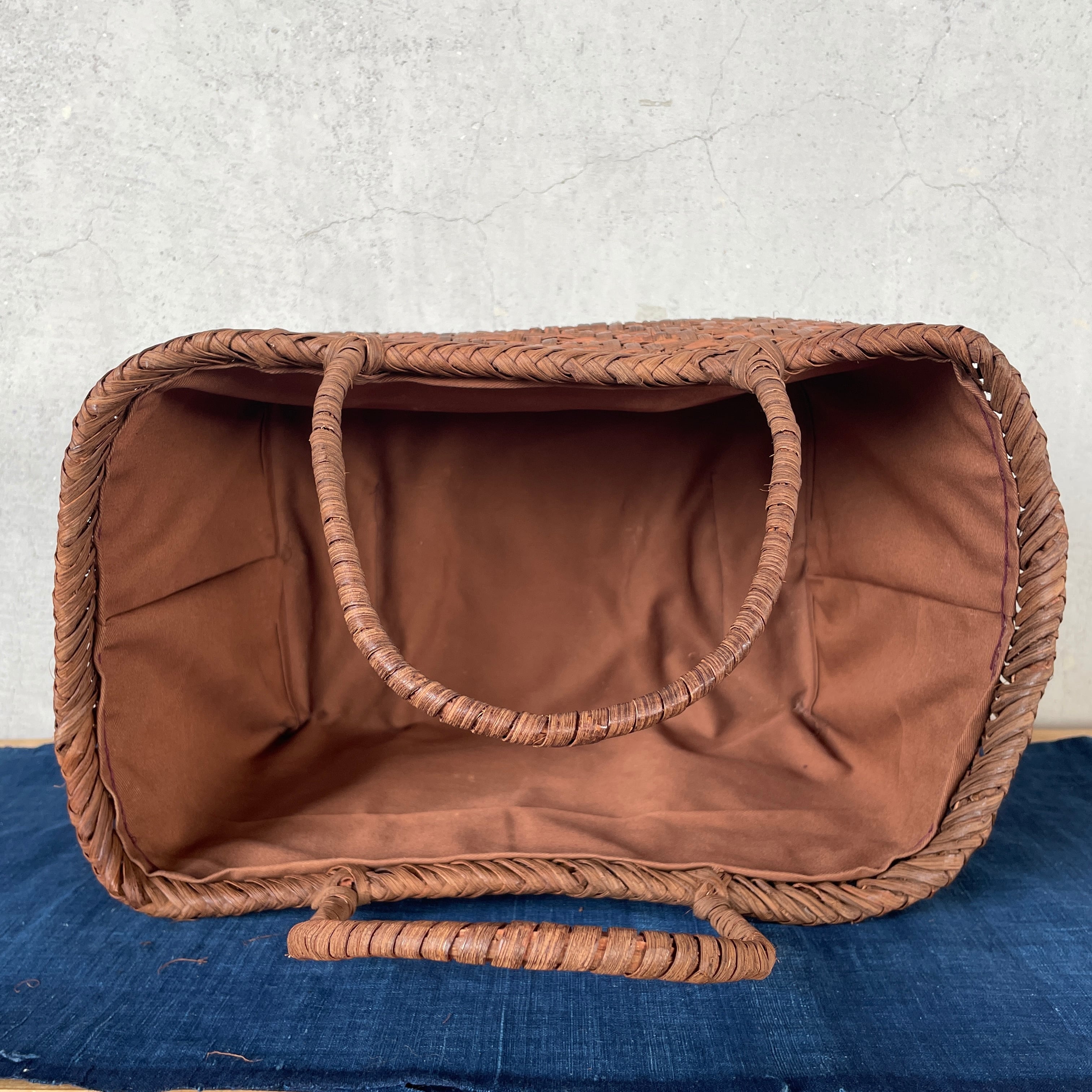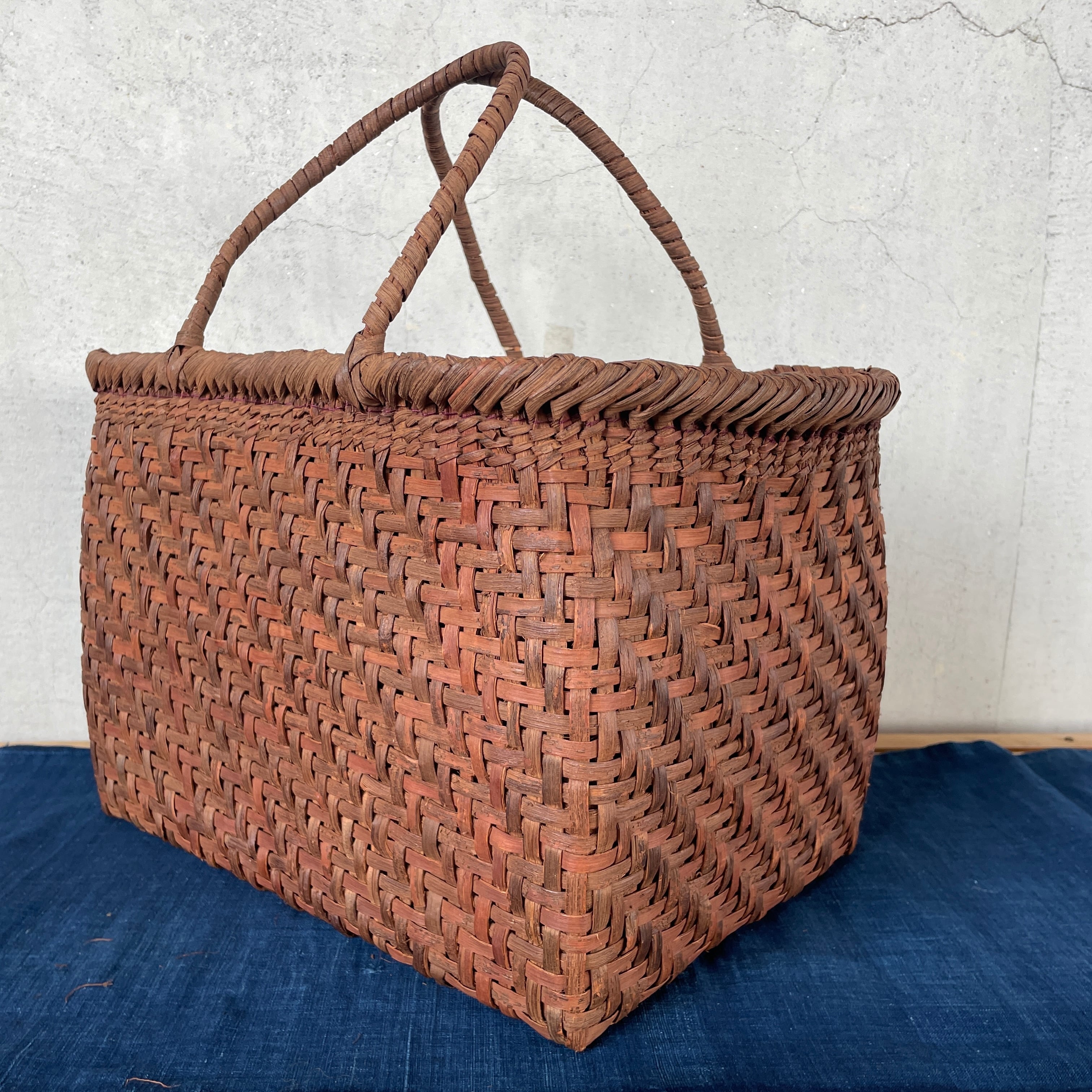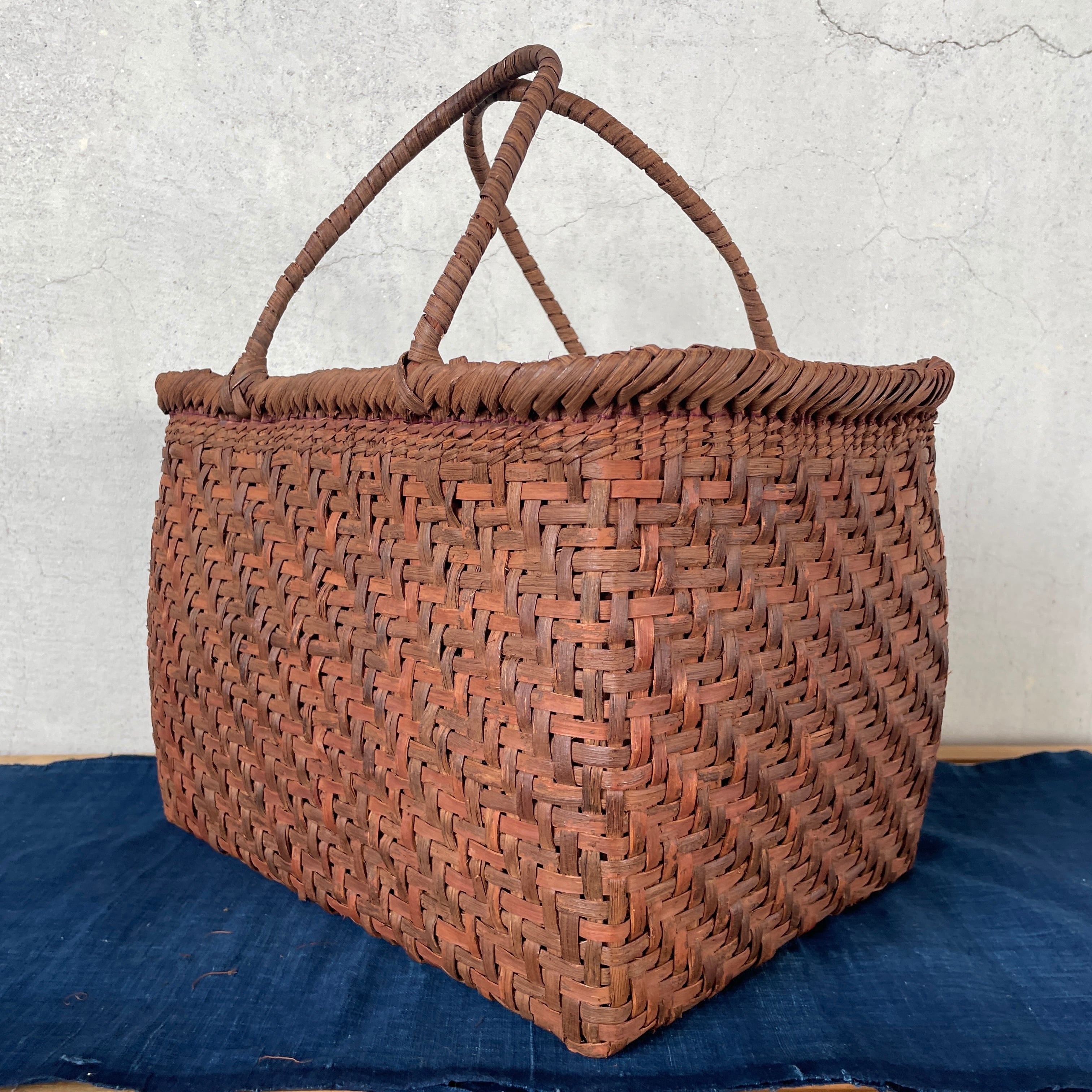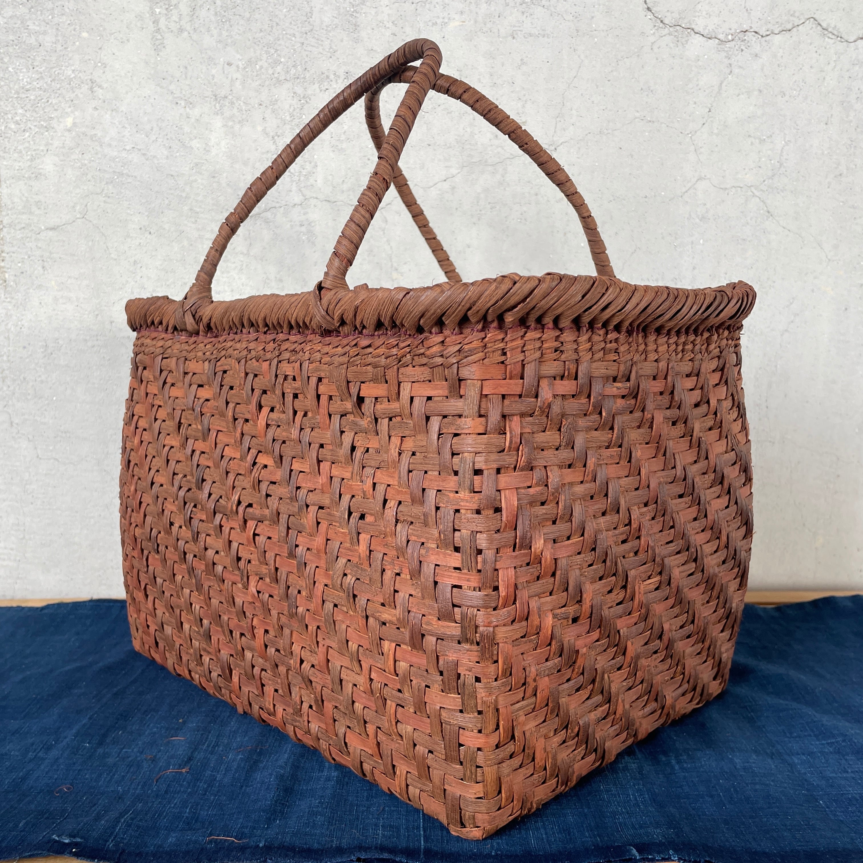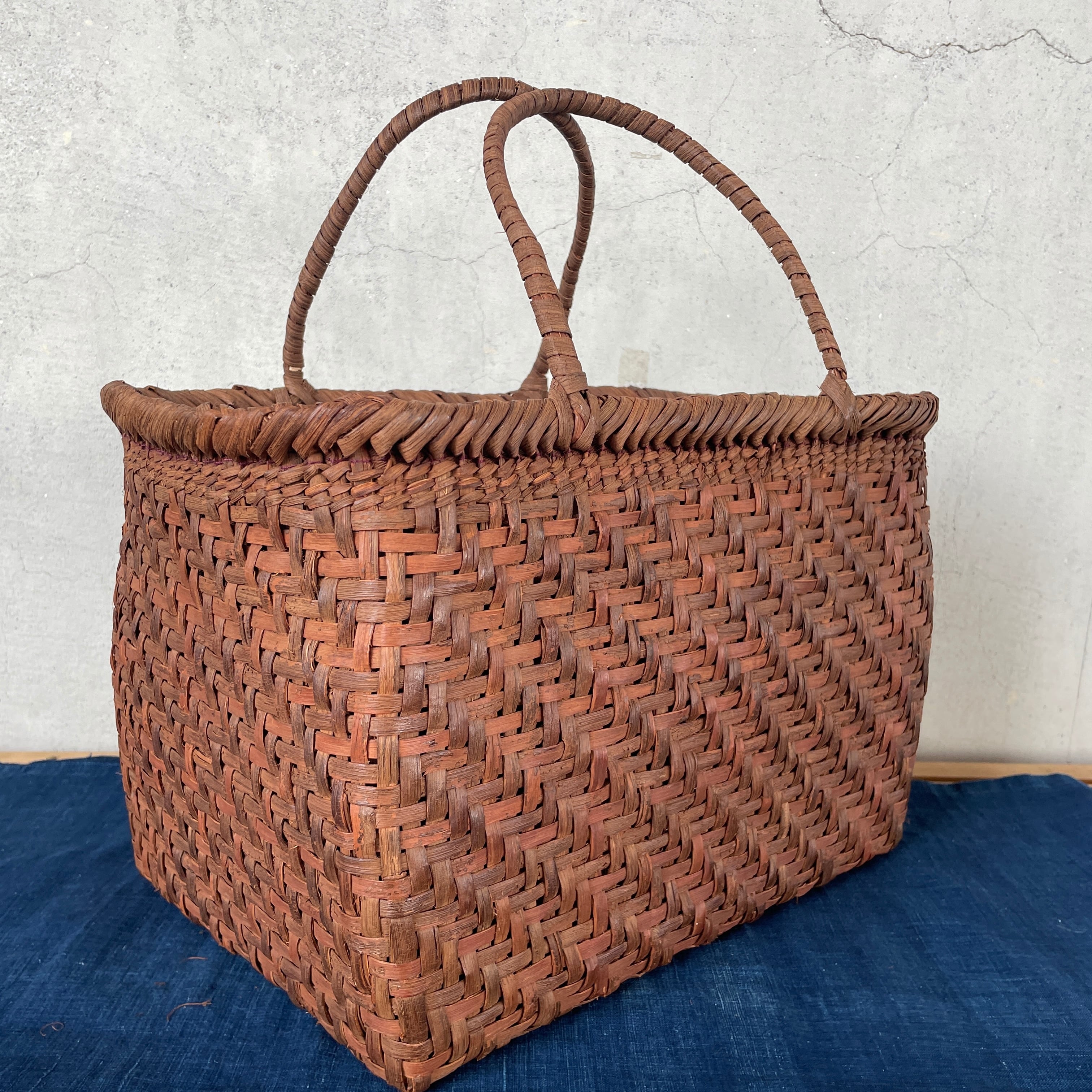 福島の奥会津地方に伝わる編み細工です。すべて現地にて仕入れております。寒暖の差が激しいこの地域では良質な山葡萄の蔓皮が採取できます。山葡萄の蔓皮は一年の内で梅雨時期のたった二週間ほどしか取れないためとても貴重な材料です。良質な山葡萄は使い込むことでまるでレザーのような経年劣化がお楽しみいただけます。